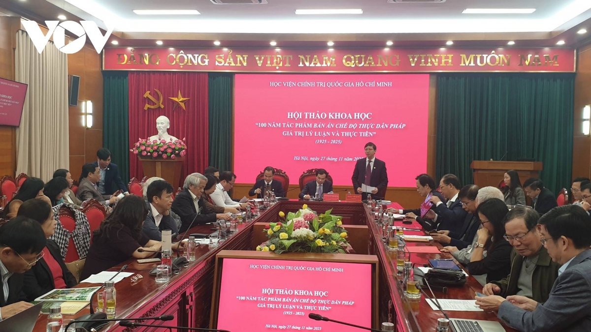 VOV.VN - "Bản án chế độ thực dân Pháp” là tác phẩm mang giá trị lâu bền, không chỉ đối với cuộc đấu tranh chống chủ nghĩa thực dân ở thế kỷ XX, mà tiếp tục khẳng định sự đúng đắn của con đường độc lập dân tộc gắn với chủ nghĩa xã hội ở Việt Nam.