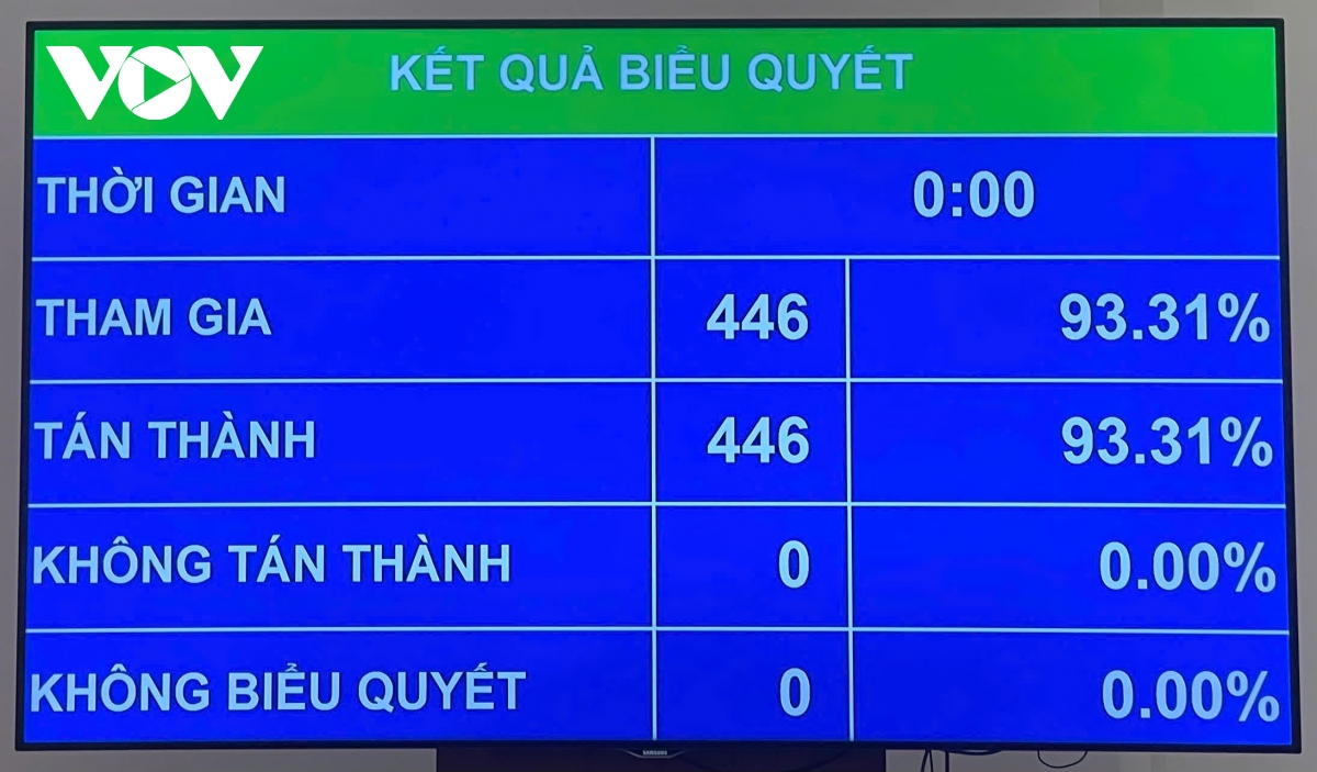 Cụ thể, có 446/446 (tỉ lệ 100%) ĐBQH tham gia tán thành Nghị quyết của Quốc hội về việc thành lập Ủy ban dự thảo sửa đổi, bổ sung một số điều của Hiến pháp năm 2013.