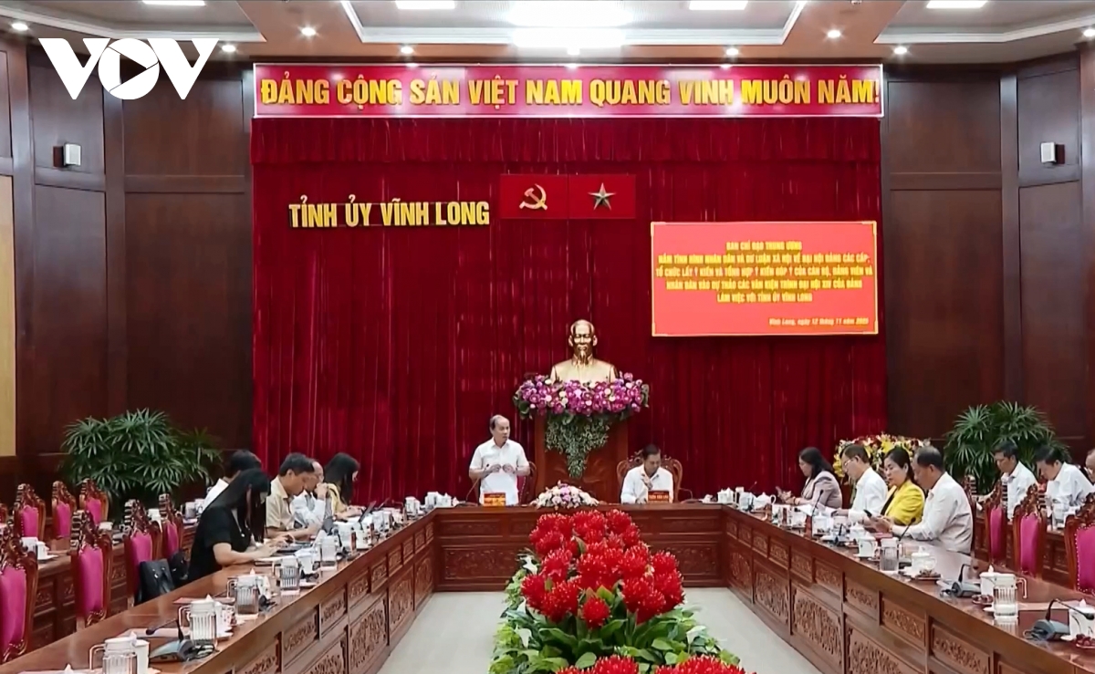 Báo cáo với Đoàn công tác, Ban Thường vụ Tỉnh ủy Vĩnh Long cho biết đã lãnh đạo, chỉ đạo triển khai quán triệt và nghiêm túc tổ chức thực hiện các Chỉ thị, Nghị quyết của Trung ương về tổ chức Đại hội Đảng các cấp nhiệm kỳ 2025 - 2030, tiến tới đại hội XIV của Đảng. Nhìn chung tình hình diễn biến tư tưởng của cán bộ đảng viên nhân dân đối với Đại hội Đảng, các cấp trong tỉnh rất tích cực.