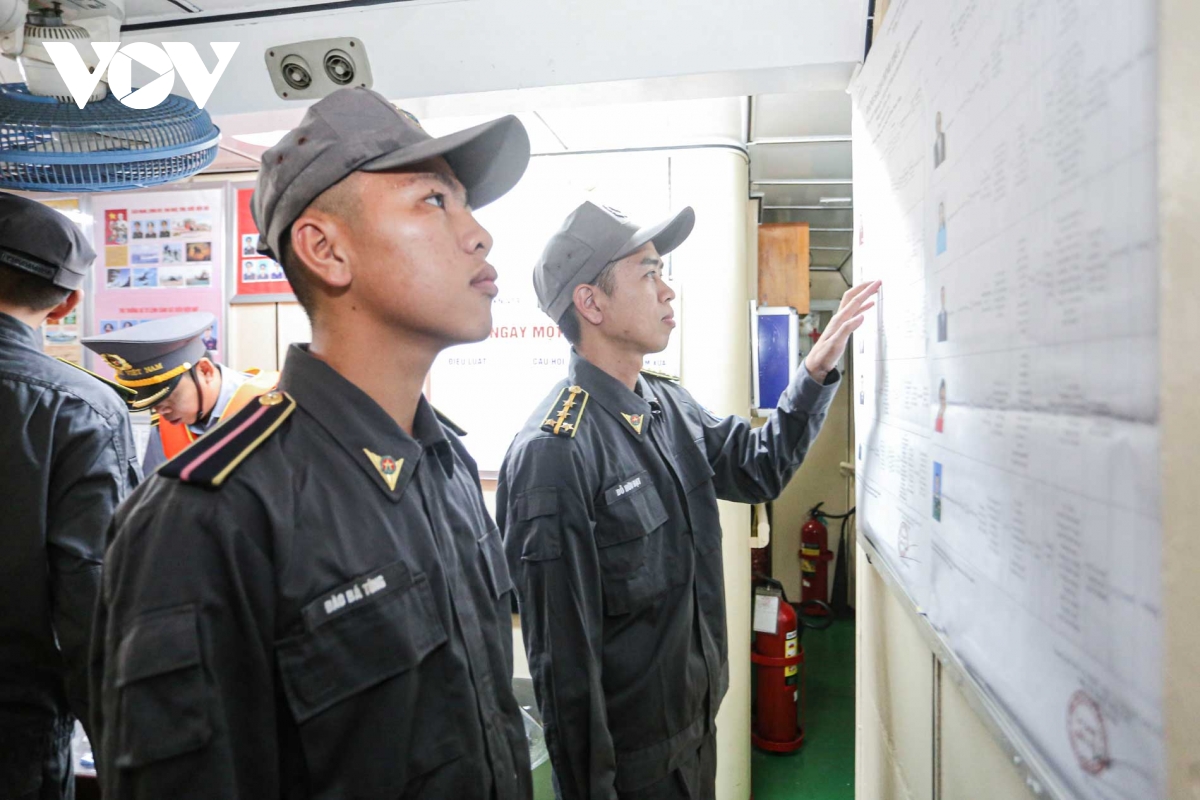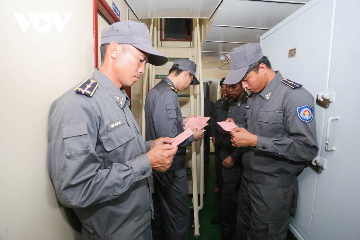 Tổ bầu cử lưu động từ tàu KN-260 tiến hành phổ biến tóm tắt quy chế, thể lệ bầu cử cho cán bộ, nhân viên đang thực thi nhiệm vụ trên tàu trực, trước khi tiến hành bỏ phiếu.