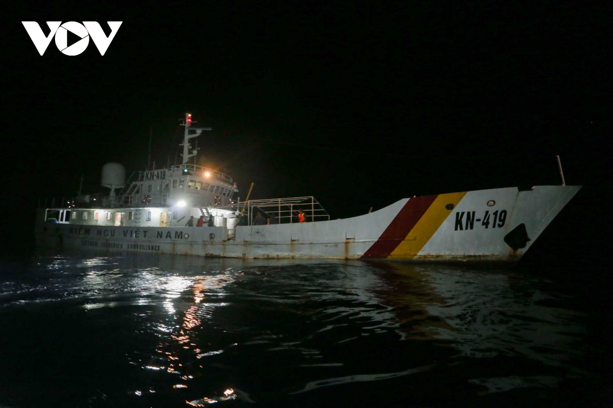 Tàu KN-419 một trong những "pháo đài" đang kiên cường bám trụ, thực hiện nhiệm vụ chốt giữ, tuần tra kiểm soát và chống khai thác IUU tại vùng biển giáp ranh xa xôi.