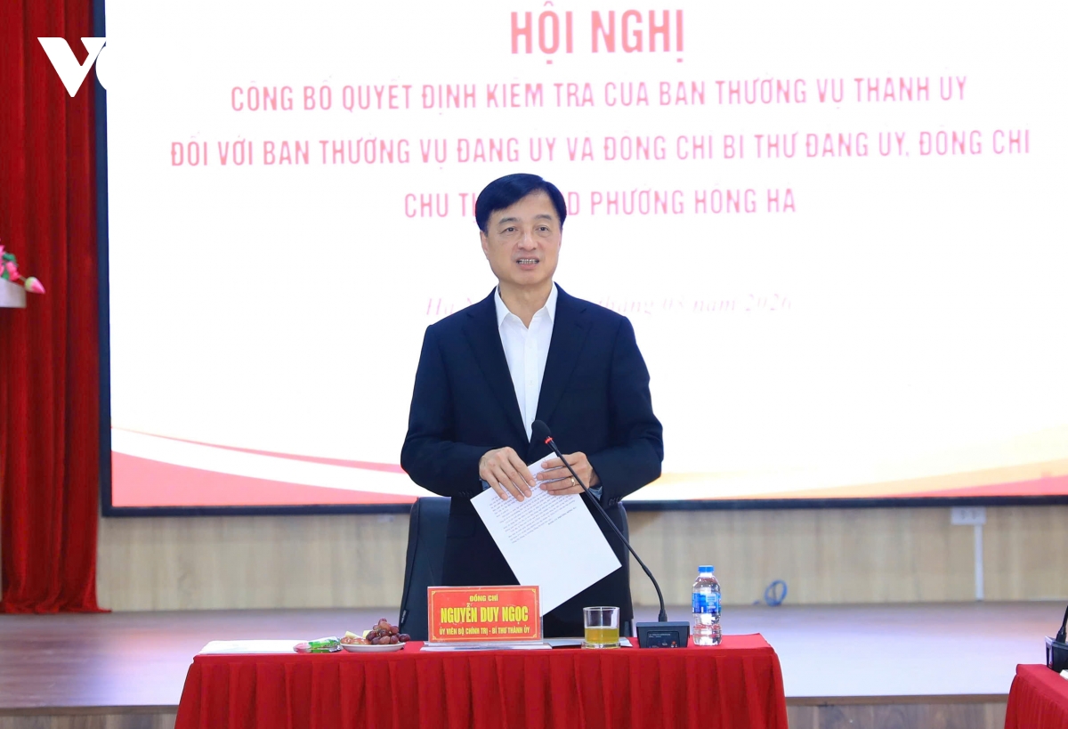 Chiều 10/3, Ủy viên Bộ Chính trị, Bí thư Thành ủy Hà Nội Nguyễn Duy Ngọc, Trưởng đoàn kiểm tra số 1 của Ban Thường vụ Thành ủy, đã chủ trì hội nghị công bố quyết định kiểm tra đối với Ban Thường vụ Đảng ủy và các đồng chí Bí thư Đảng ủy, Chủ tịch UBND phường Hồng Hà.