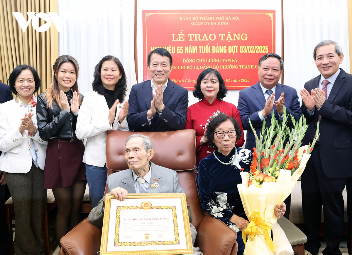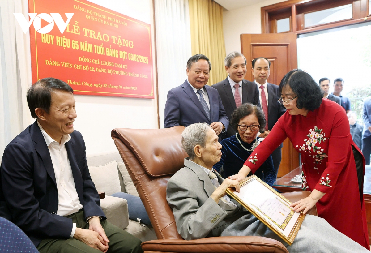 Trân trọng trao Huy hiệu 65 năm tuổi Đảng và tặng hoa chúc mừng, Bí thư Thành ủy Hà Nội Bùi Thị Minh Hoài cảm ơn đồng chí Lương Tam Kỳ vì những đóng góp cho sự nghiệp cách mạng của Đảng và dân tộc. Bí thư Thành ủy Hà Nội chúc đồng chí Lương Tam Kỳ dồi dào sức khỏe, trường thọ, chúc đồng chí và gia đình một năm mới Ất Tỵ 2025 an khang, thịnh vượng.