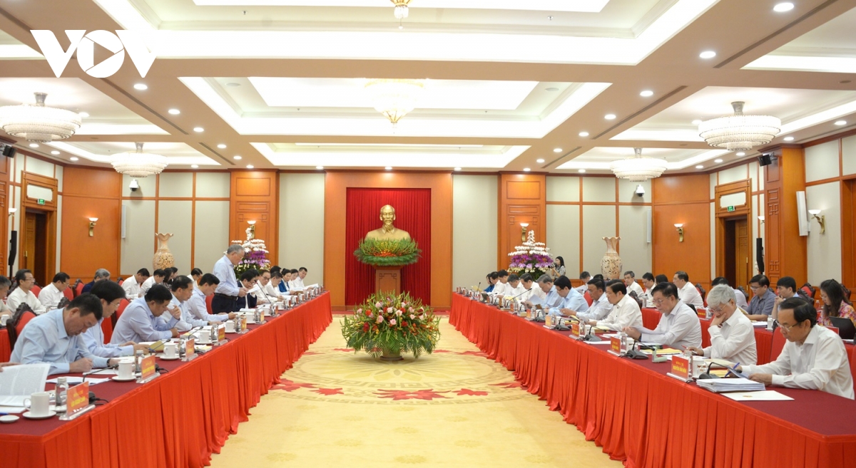 VOV.VN - Sáng 10/9, tại Trụ sở Trung ương Đảng, dưới sự chủ trì của Tổng Bí thư Tô Lâm, Bộ Chính trị có buổi làm việc với Ban thường vụ Đảng ủy Chính phủ để cho ý kiến vào dự thảo văn kiện, phương án nhân sự cấp ủy và công tác chuẩn bị Đại hội đại biểu Đảng bộ Chính phủ nhiệm kỳ 2025-2030.