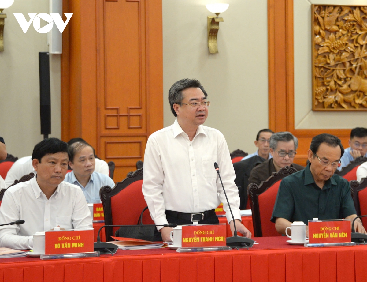 Ông Nguyễn Thanh Nghị, Ủy viên Ban Chấp hành Trung ương Đảng Cộng sản Việt Nam, Phó Bí thư Thường trực Thành ủy Thành phố Hồ Chí Minh báo cáo với Bộ Chính trị