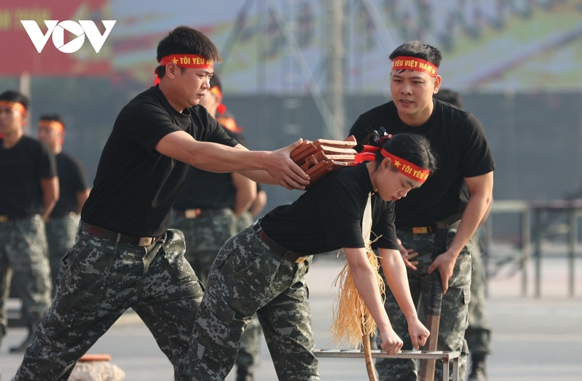 cán bộ, chiến sĩ Đoàn Cảnh sát đặc nhiệm số 1 Bộ Tư lệnh CSCĐ trình diễn nội công, công phá.