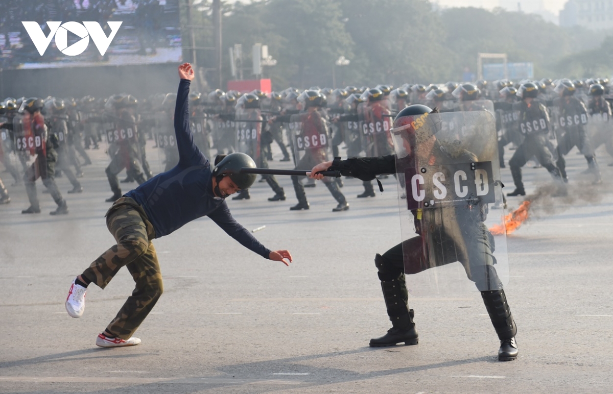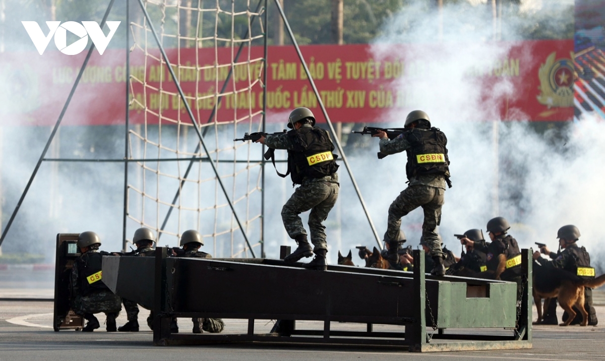 Lực lượng Cảnh sát Cơ động biểu diễn thực hiện các nhiệm vụ đột kích, tấn công mục tiêu cùng cảnh khuyển.