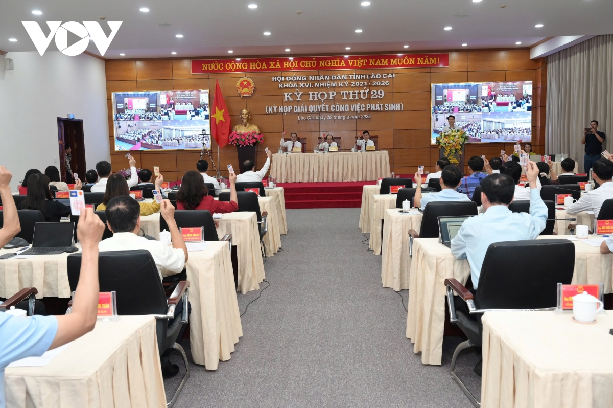 Kỳ họp HĐND tỉnh Lào Cai kết nối trực tuyến với Yên Bái nhằm quyết nghị việc sắp xếp đơn vị hành chính cấp tỉnh, cấp xã.