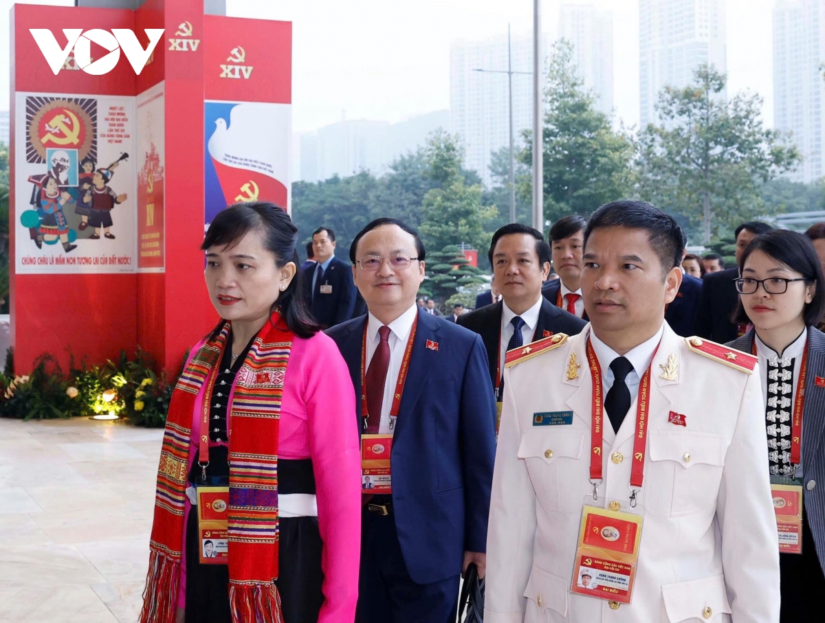 Các đại biểu đến dự phiên khai mạc Đại hội XIV của Đảng.