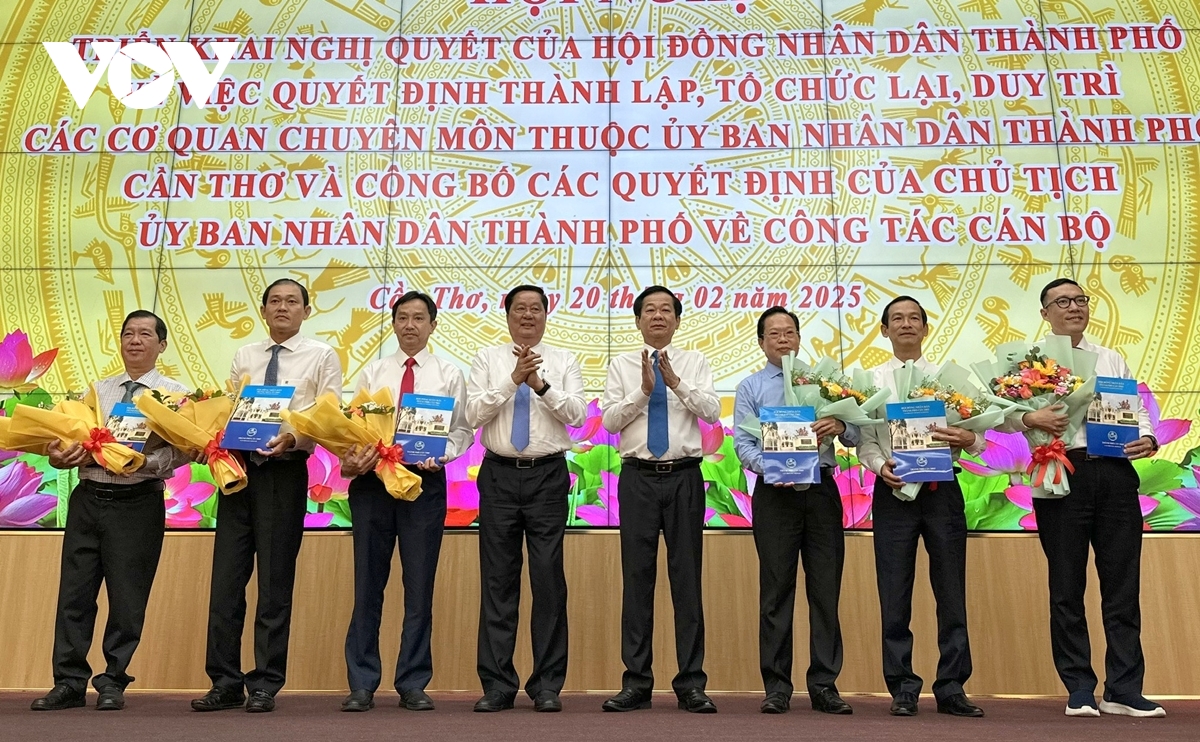 VOV.VN - Chiều 20/2, UBND TP. Cần Thơ tổ chức hội nghị triển khai các Nghị quyết của HĐND thành phố về thành lập các cơ quan chuyên môn thuộc UBND thành phố và công bố các quyết định về công tác cán bộ.