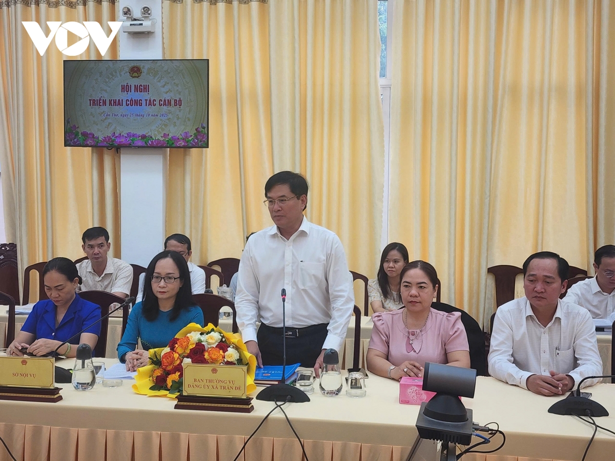 Theo đó, Hội nghị đã công bố Quyết định của Chủ tịch UBND thành phố Cần Thơ tiếp nhận, bổ nhiệm ông Nguyễn Trọng Sơn, Bí thư Đảng ủy, Chủ tịch Hội đồng nhân dân xã Trần Đề giữ chức vụ Chánh Văn phòng UBND thành phố Cần Thơ. Thời hạn bổ nhiệm là 5 năm kể từ ngày ký.