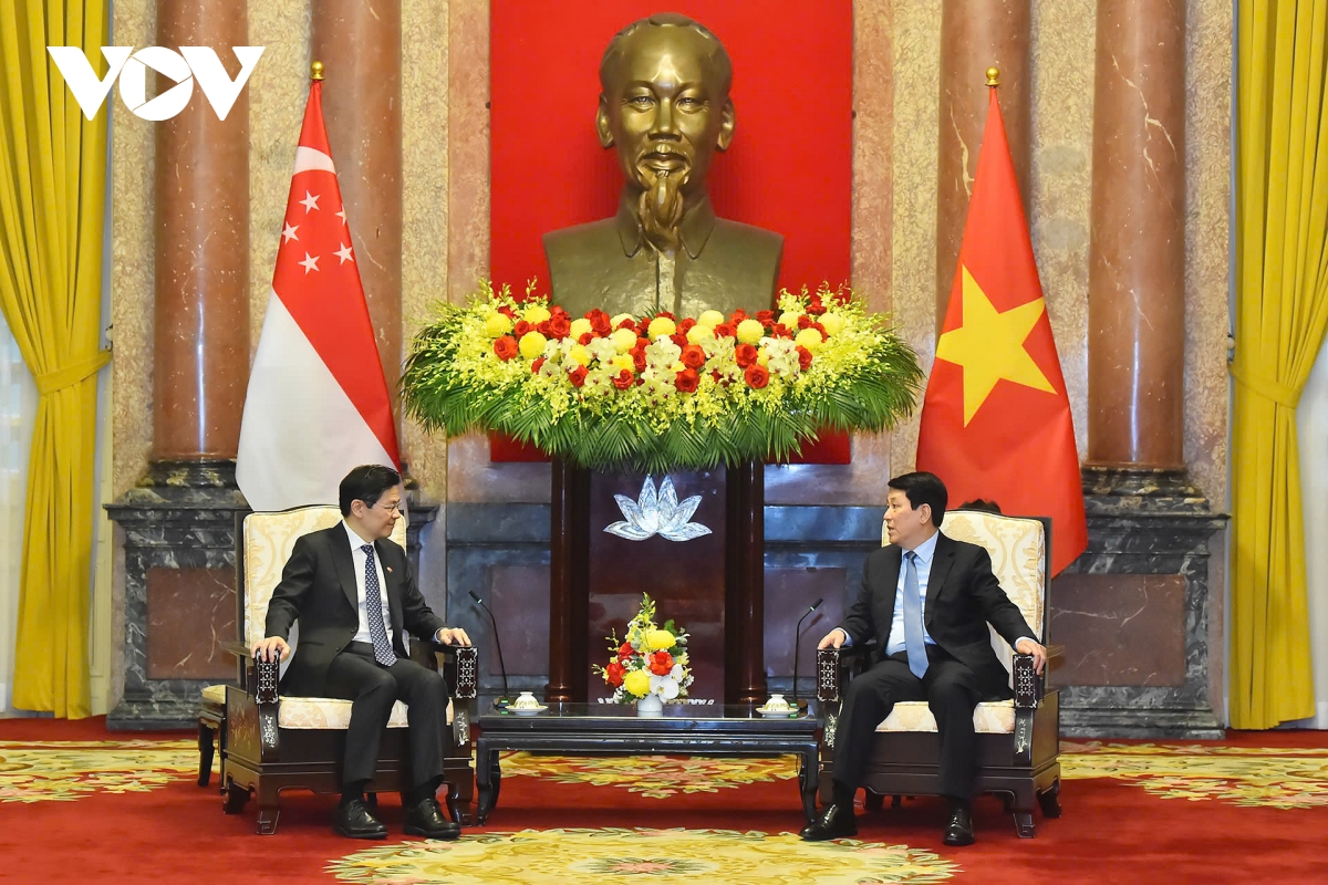 VOV.VN - Chủ tịch nước đề nghị Singapore tiếp tục hỗ trợ Việt Nam phát triển nguồn nhân lực, đặc biệt là đội ngũ cán bộ cấp chiến lược; nâng cao chất lượng trên tất cả các lĩnh vực hợp tác, trong đó có đổi mới sáng tạo, năng lượng sạch, chuyển đổi số.