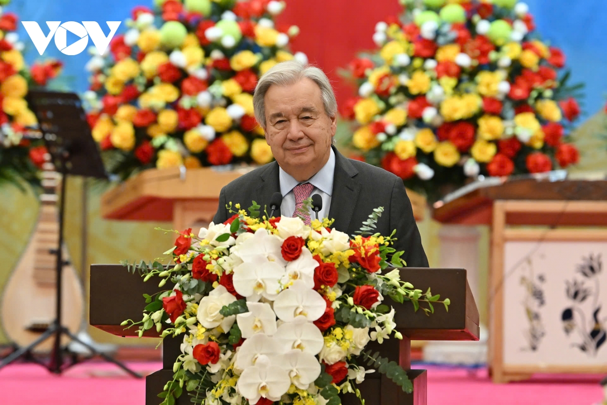 Nhân dịp Liên hợp quốc kỷ niệm 80 năm thành lập, nhấn mạnh lại ý nghĩa cốt lõi của Liên hợp quốc là “vì con người”, Tổng Thư ký Guterres đánh giá, dù Liên hợp quốc chưa thể ngăn chặn được mọi xung đột, nhưng hàng trăm nghìn nhân viên và lực lượng gìn giữ hòa bình của tổ chức đa phương này vẫn ngày đêm nỗ lực trong những hoàn cảnh gian khó để cứu trợ nhân đạo và bảo vệ cuộc sống của dân trên khắp thế giới. Đánh giá cao vai trò của Việt Nam, Tổng Thư ký Liên hợp quốc nhấn mạnh Việt Nam không chỉ là nước có nhiều đóng góp cho các hoạt động gìn giữ hòa bình, mà còn là hình mẫu của một dân tộc đã vượt qua chiến tranh, trở thành một trong những câu chuyện phát triển thành công nhất toàn cầu.