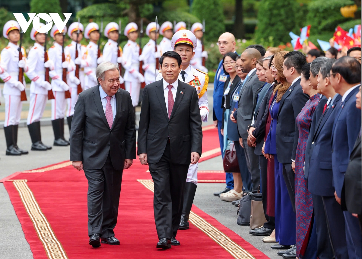 Chủ tịch nước Lương Cường chủ trì lễ đón chính thức Tổng Thư ký Liên Hợp Quốc António Guterres thăm Việt Nam