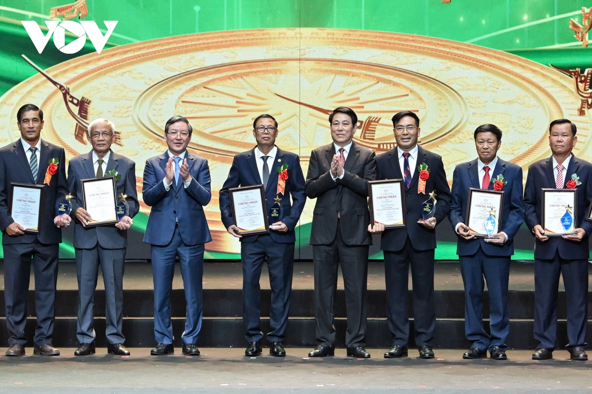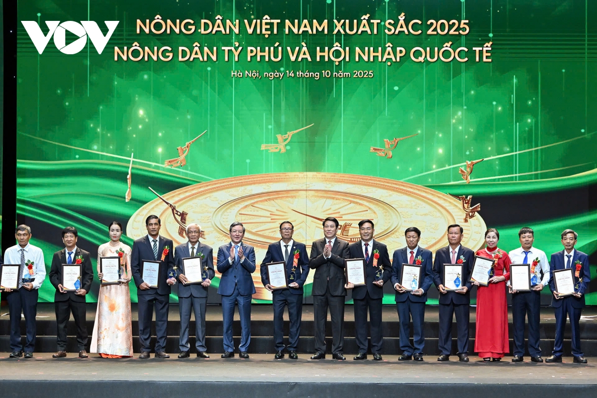 Tại buổi lễ, Chủ tịch nước Lương Cường và lãnh đạo các bộ, ngành đã trao Biểu trưng và Chứng nhận vinh danh 63 "Nông dân Việt Nam xuất sắc" và 32 "Nhà khoa học của Nhà nông" năm 2025.