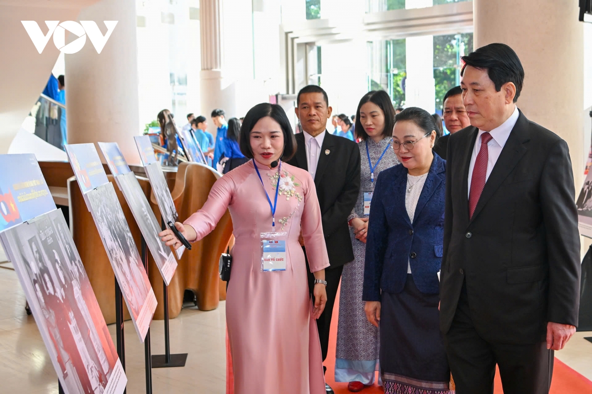 Trước đó, Chủ tịch nước Lương Cường cùng các đại biểu dự lễ kỷ niệm đã tham quan trưng bày ảnh về các dấu mốc nổi bật trong suốt chiều dài lịch sử của mối quan hệ hữu nghị vĩ đại, đoàn kết đặc biệt và hợp tác toàn diện Việt Nam - Lào, Lào - Việt Nam.