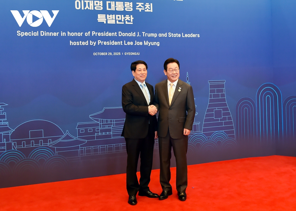 VOV.VN - Tối 29/10, Tổng thống Hàn Quốc Lee Jae Myung đã tổ chức tiệc tối chào mừng các nhà Lãnh đạo APEC đã đến cố đô Gyeongju, Hàn Quốc tham dự Hội nghị cấp cao APEC 2025. Đây là sự kiện đầu tiên trong chuỗi các hoạt động của các Nhà Lãnh đạo trong khuôn khổ Tuần lễ cấp cao APEC 2025.