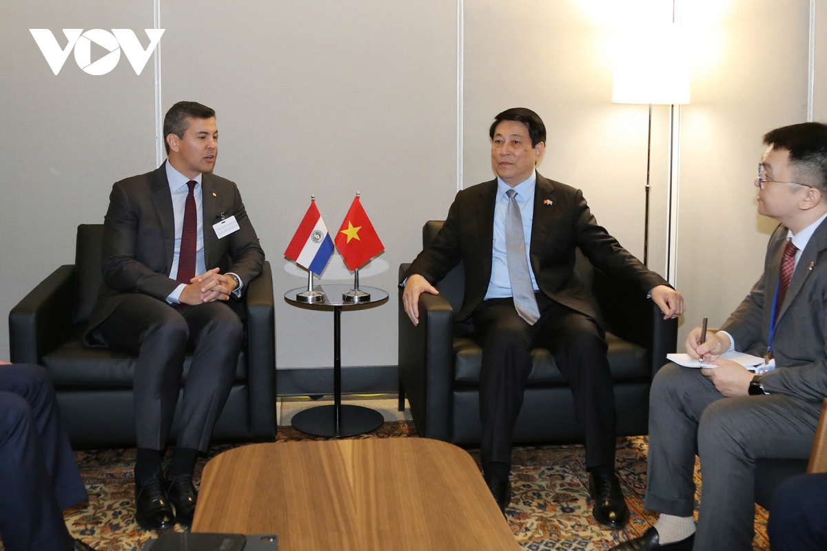 Nhân dịp này, Tổng thống Paraguay Santiago Peña Palacios đã mời Chủ tịch nước Lương Cường thăm Paraguay. Chủ tịch nước Lương Cường trân trọng cảm ơn và mời Tổng thống Paraguay Santiago Peña Palacios tới thăm Việt Nam và tham dự Lễ ký Công ước Liên hợp quốc về chống tội phạm mạng tại Hà Nội (25-26/10/2025).