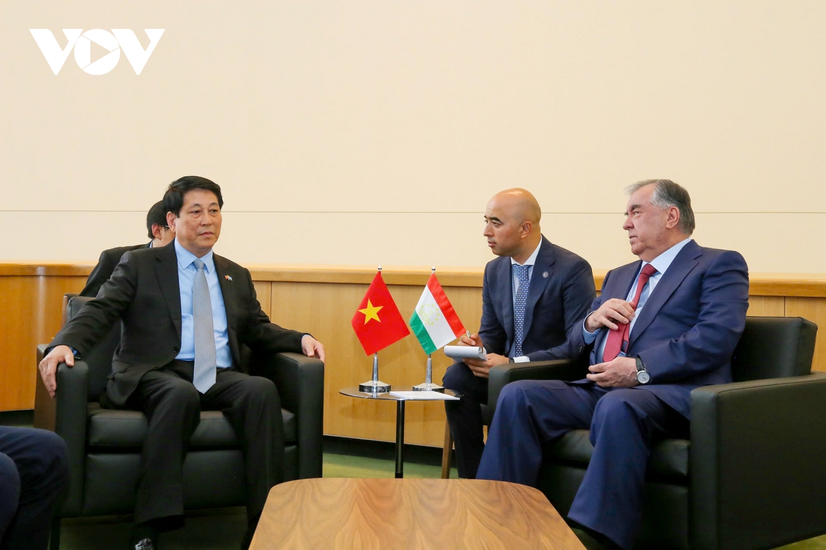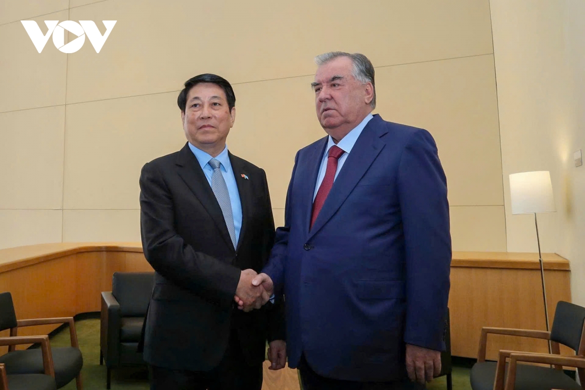 VOV.VN - Ngày 22/9, tại New York, Hoa Kỳ, Chủ tịch nước Lương Cường đã gặp Tổng thống Tajikistan, Ngài Emomali Rahmon nhân dịp tham dự Phiên Thảo luận chung cấp cao Đại hội đồng Liên Hợp Quốc (LHQ) Khóa 80, kết hợp hoạt động song phương tại Hoa Kỳ.