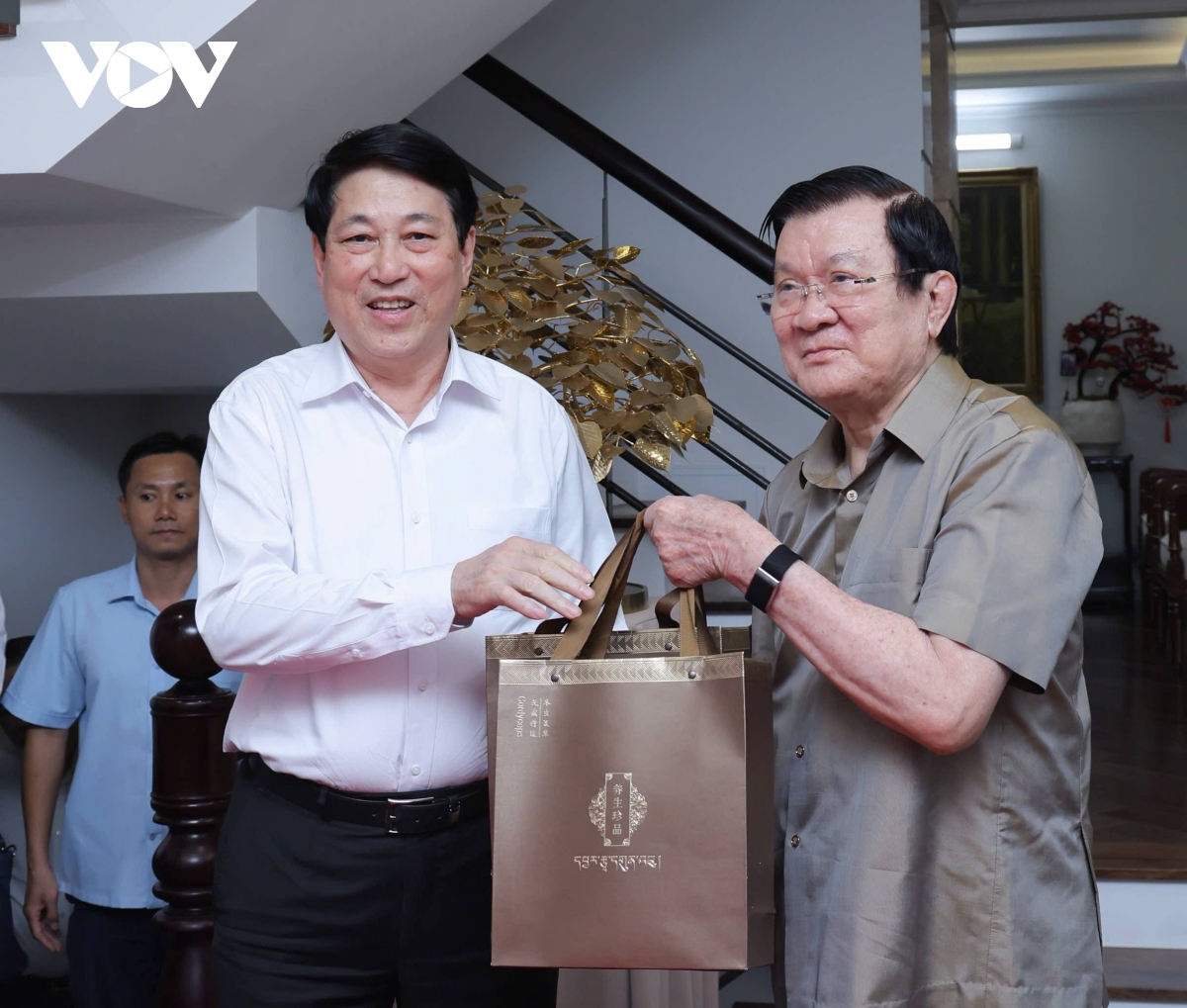 Chủ tịch nước bày tỏ sự trân trọng, tri ân sâu sắc đối với những cống hiến, đóng góp to lớn của nguyên Chủ tịch nước Nguyễn Minh Triết và nguyên Chủ tịch nước Trương Tấn Sang cho sự nghiệp cách mạng của Đảng, của dân tộc; đồng thời mong muốn tiếp tục nhận được những ý kiến tâm huyết, kinh nghiệm quý báu của các đồng chí cho công cuộc xây dựng và phát triển đất nước trong kỷ nguyên mới.
