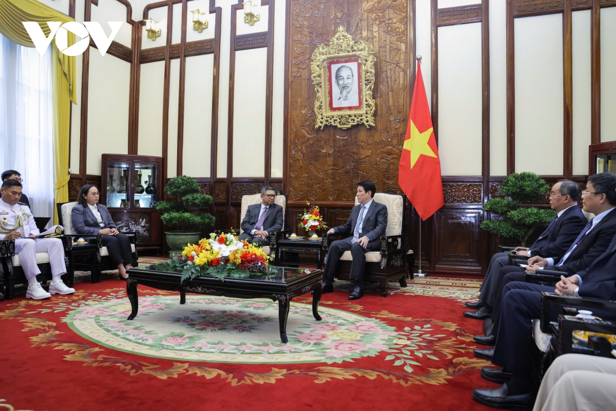 Chủ tịch nước Lương Cường trao đổi với Đại sứ Indonesia tại Việt Nam Denny Abdi.