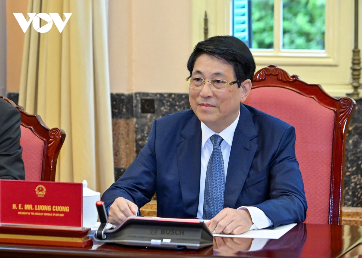 Chủ tịch nước Lương Cường phát biểu tại buổi tiếp.