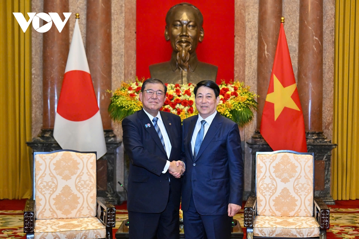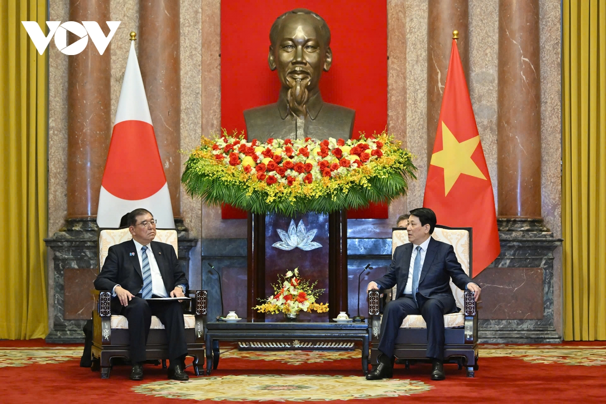 Tại buổi tiếp, Chủ tịch nước Lương Cường thay mặt Nhà nước và nhân dân Việt Nam hoan nghênh chuyến thăm Việt Nam đầu tiên trên cương vị người đứng đầu Chính phủ Nhật Bản của Thủ tướng Ishiba Shigeru; bày tỏ vui mừng chứng kiến quan hệ hai nước phát triển thực chất, toàn diện, hiệu quả trên tất cả các lĩnh vực và đạt nhiều tiến triển mới, thành quả nổi bật sau gần 2 năm nâng cấp quan hệ lên Đối tác chiến lược toàn diện vì hòa bình và thịnh vượng ở châu Á và trên thế giới.