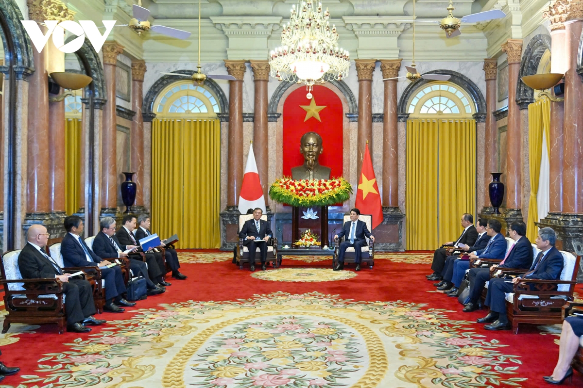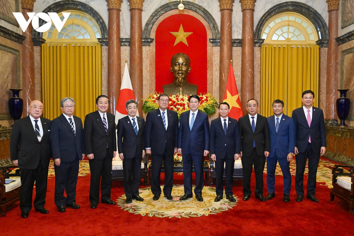 Thủ tướng Ishiba cảm ơn sự đón tiếp nồng hậu và ấm áp của Chủ tịch nước Lương Cường và vui mừng được gặp lại Chủ tịch nước kể từ dịp Tuần lễ cấp cao Diễn đàn hợp tác kinh tế châu Á - Thái Bình Dương (APEC) diễn ra tại Peru tháng 11/2024 và đúng vào thời điểm Việt Nam đang tổ chức các hoạt động kỷ niệm 50 năm ngày giải phóng Miền Nam, thống nhất đất nước, tận mắt chứng kiến sự thay đổi to lớn của Việt Nam; khẳng định Nhật Bản sẽ tiếp tục đồng hành, hỗ trợ Việt Nam xây dựng nền kinh tế độc lập tự chủ, thực hiện các mục tiêu đến năm 2030, Việt Nam trở thành nước đang phát triển có công nghiệp hiện đại, thu nhập trung bình cao và đến năm 2045 là nước phát triển, có thu nhập cao.