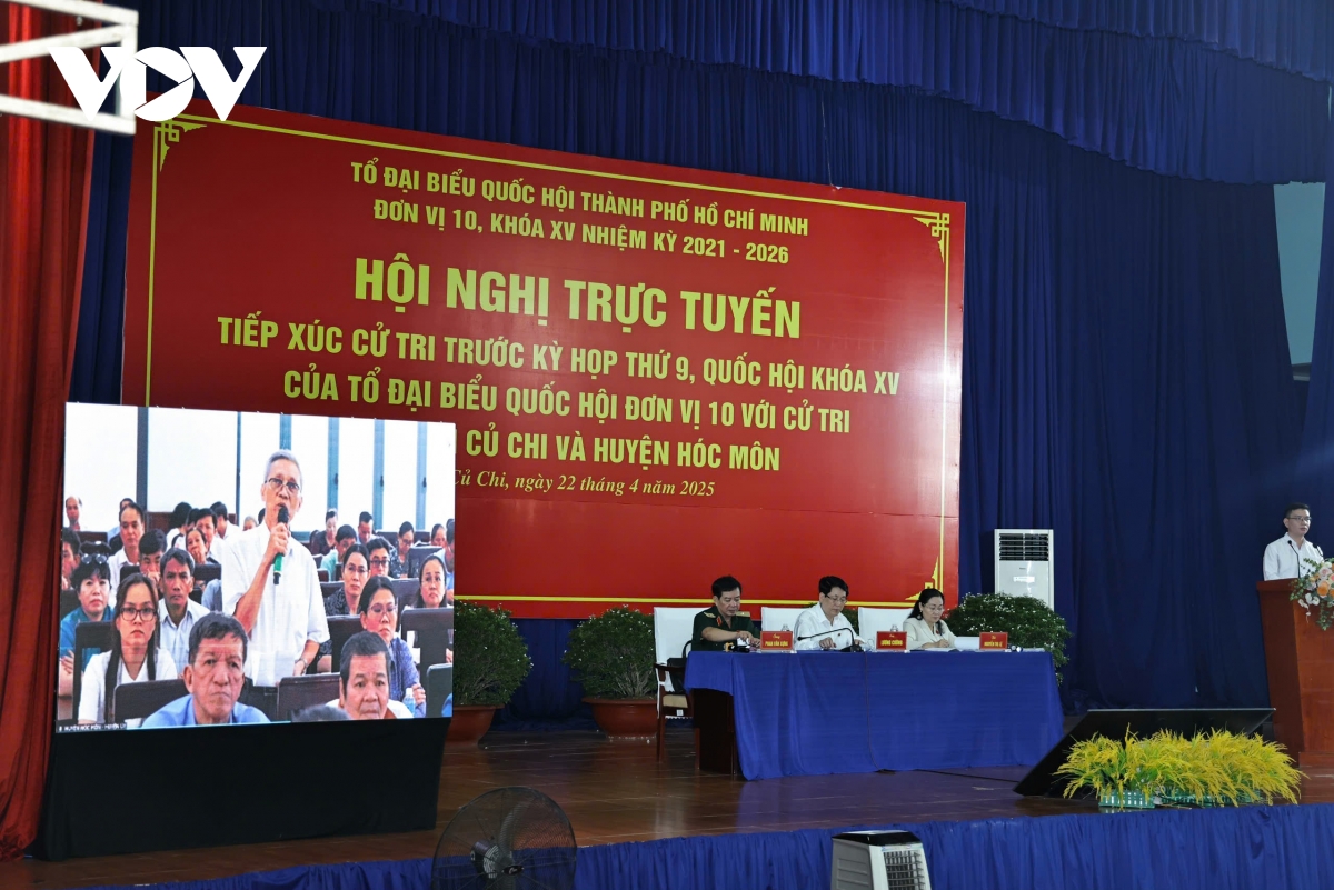 Đồng thời, các cử tri cũng kiến nghị nhiều vấn đề còn bất cập từ thực tiễn liên quan đến đời sống người dân; còn vướng mắc cần giải quyết trong phát triển hạ tầng đô thị; quản lý quy hoạch; đất đai; xây dựng; liên quan đến các dự án đang triển khai của 2 huyện Củ Chi, Hóc Môn.