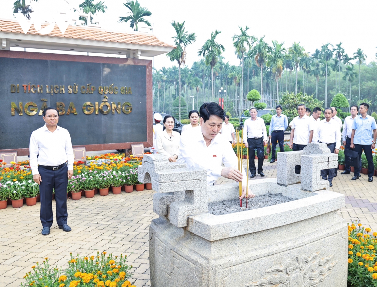 Sáng cùng ngày, tại Di tích Lịch sử quốc gia Ngã Ba Giồng (xã Xuân Thới Thượng, huyện Hóc Môn), Chủ tịch nước Lương Cường đã đến dâng hoa, dâng hương và dành phút mặc niệm bày tỏ lòng biết ơn sâu sắc, tưởng nhớ công lao to lớn của Chủ tịch Hồ Chí Minh và tri ân các đồng chí nguyên lãnh đạo Trung ương Đảng, các bậc Cách mạng tiền bối, các anh hùng liệt sĩ, đồng bào đã ngã xuống vì độc lập, tự do của dân tộc, vì hạnh phúc của Nhân dân.