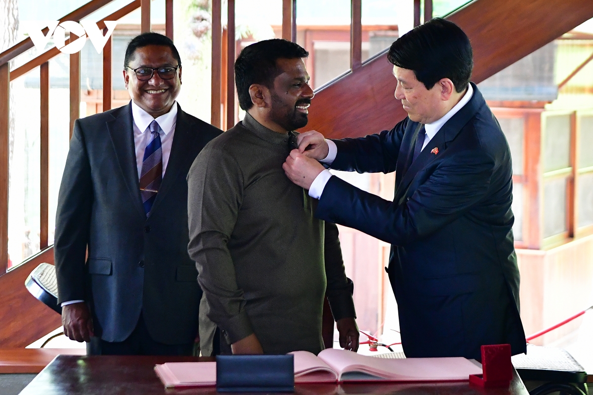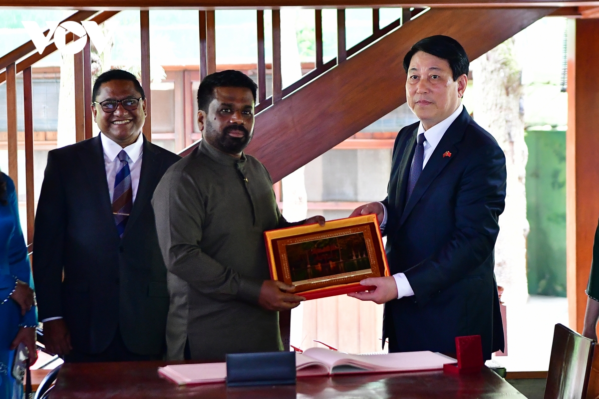 Sau lễ đón chính thức và buổi hội đàm, Chủ tịch nước Lương Cường đã cùng Tổng thống Sri Lanka Anura Kumara Dissanayake tới thăm Khu Di tích Chủ tịch Hồ Chí Minh tại Phủ Chủ tịch.