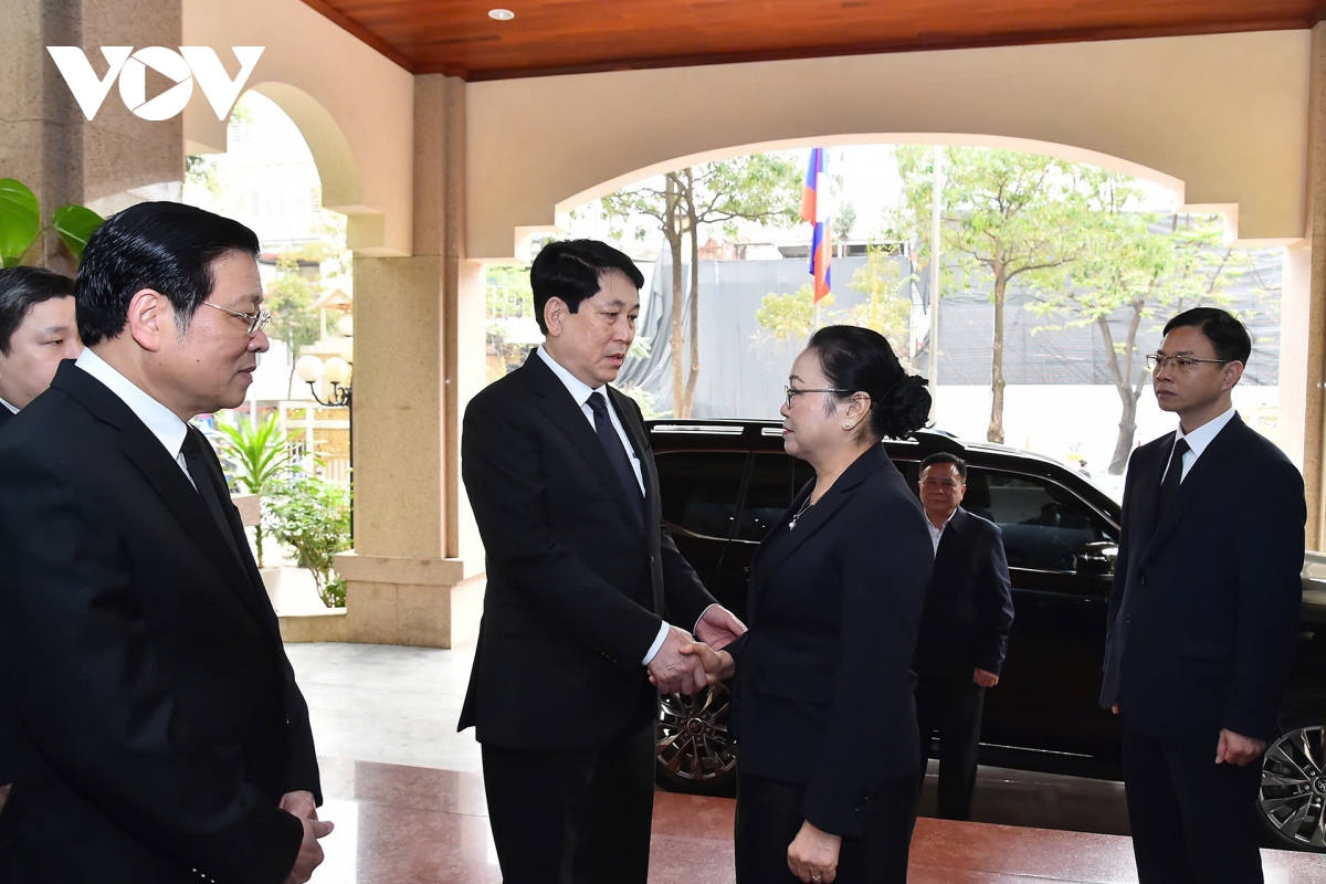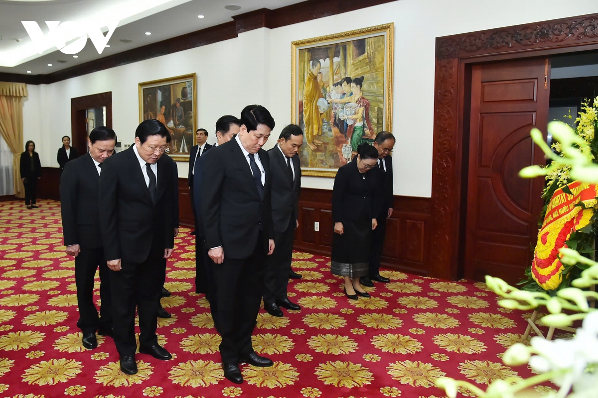 Chủ tịch nước Lương Cường và đoàn cấp cao Việt Nam viếng đồng chí Khamtay Siphandone - nguyên Chủ tịch Đảng Nhân dân Cách mạng Lào, nguyên Chủ tịch nước và nguyên Thủ tướng nước Cộng hoà Dân chủ Nhân dân Lào.