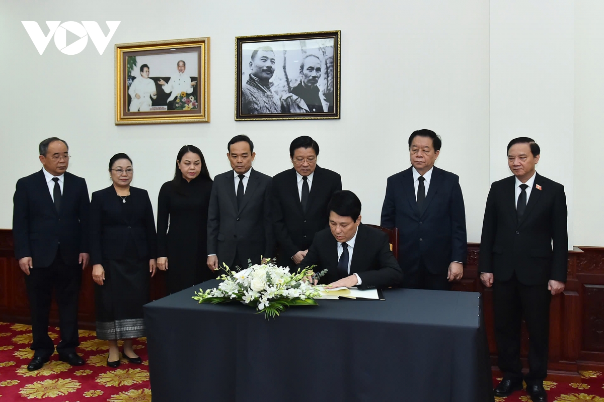 VOV.VN - Sáng 4/4, Chủ tịch nước Lương Cường đã tới Đại sứ quán Lào tại Hà Nội viếng và ghi sổ tang, tưởng niệm đồng chí Đại tướng Khamtay Siphandone, nguyên Chủ tịch Ban Chấp hành Trung ương đảng Nhân dân cách mạng Lào, nguyên Chủ tịch nước CHDCND Lào, nhà cách mạng lão thành của đảng Nhân dân cách mạng Lào anh em.