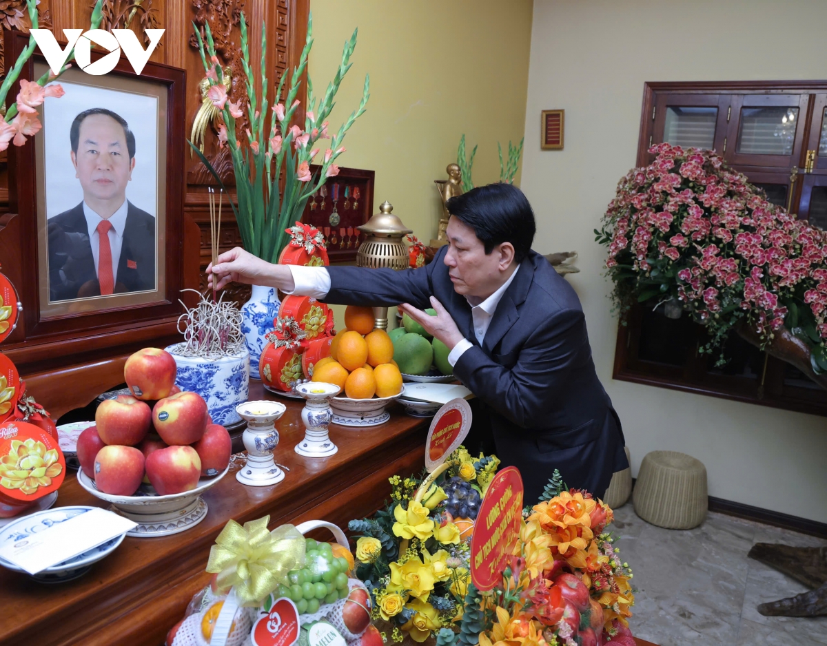 Thăm, chúc Tết gia đình và thắp nén hương thành kính, Chủ tịch nước Lương Cường tưởng nhớ, bày tỏ lòng tri ân Chủ tịch nước Trần Đại Quang, một trong những nhà lãnh đạo chủ chốt của Đảng, Nhà nước, luôn nêu cao tinh thần trách nhiệm, ý thức tổ chức, gương mẫu và giữ gìn sự đoàn kết, thống nhất của Đảng. Đồng chí đã cùng tập thể lãnh đạo Đảng, Nhà nước tập trung lãnh đạo, chỉ đạo toàn Đảng, toàn dân và toàn quân thực hiện có hiệu quả các Nghị quyết Đảng, qua đó, đã tích cực góp phần đẩy mạnh công cuộc đổi mới, phát triển kinh tế thị trường định hướng xã hội chủ nghĩa, mở rộng quan hệ đối ngoại và hội nhập quốc tế; tăng cường tiềm lực quốc phòng, an ninh, giữ vững ổn định chính trị - xã hội.