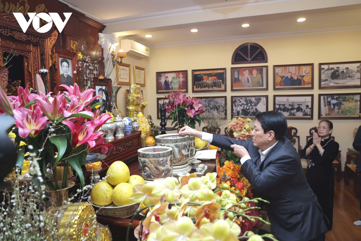 Trong không khí ấm áp, thân tình, khi đến thăm, chúc Tết, Chủ tịch nước Lương Cường ân cần thăm hỏi tình hình đời sống, công tác của thân nhân, gia đình Tổng Bí thư Lê Khả Phiêu, Tổng Bí thư Nguyễn Phú Trọng, Chủ tịch nước Trần Đức Lương, Chủ tịch nước Trần Đại Quang; chúc thân nhân, gia đình các đồng chí luôn mạnh khỏe, hạnh phúc, thành công, tiếp tục phát huy truyền thống gia đình cách mạng và những thành tích đã đạt được, tiếp tục có nhiều cống hiến cho Tổ quốc, nhân dân.