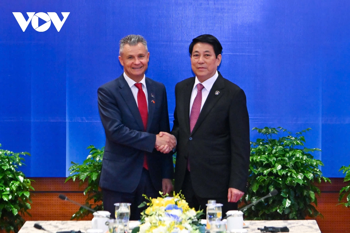 Tại cuộc tiếp, Chủ tịch nước Lương Cường đánh giá cao sự hỗ trợ tích cực của Australia dành cho chủ nhà Việt Nam trong quá trình tổ chức Lễ mở ký Công ước; cảm ơn Chính phủ Australia đã kịp thời hỗ trợ Việt Nam 03 triệu AUD để khắc phục hậu quả bão số 10 và 11.