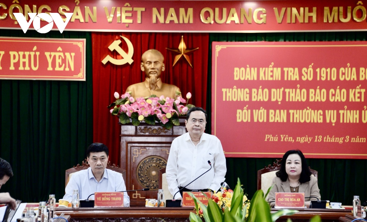 Cho ý kiến tại buổi làm việc với Ban thường vụ tỉnh ủy Phú Yên về dự thảo báo cáo kết quả kiểm tra của đoàn kiểm tra 1910 của Bộ Chính trị, Chủ tịch Quốc hội Trần Thanh Mẫn, Trưởng đoàn kiểm tra đề nghị trong thời gian tới, Ban Thường vụ tỉnh, Ủy ban nhân dân, các sở ngành của Phú Yên làm tốt công tác tư tưởng cho cán bộ, đảng viên thực hiện các chủ trương, chỉ thị, nghị quyết để tạo sự thống nhất cao về nhận thức và hành động.