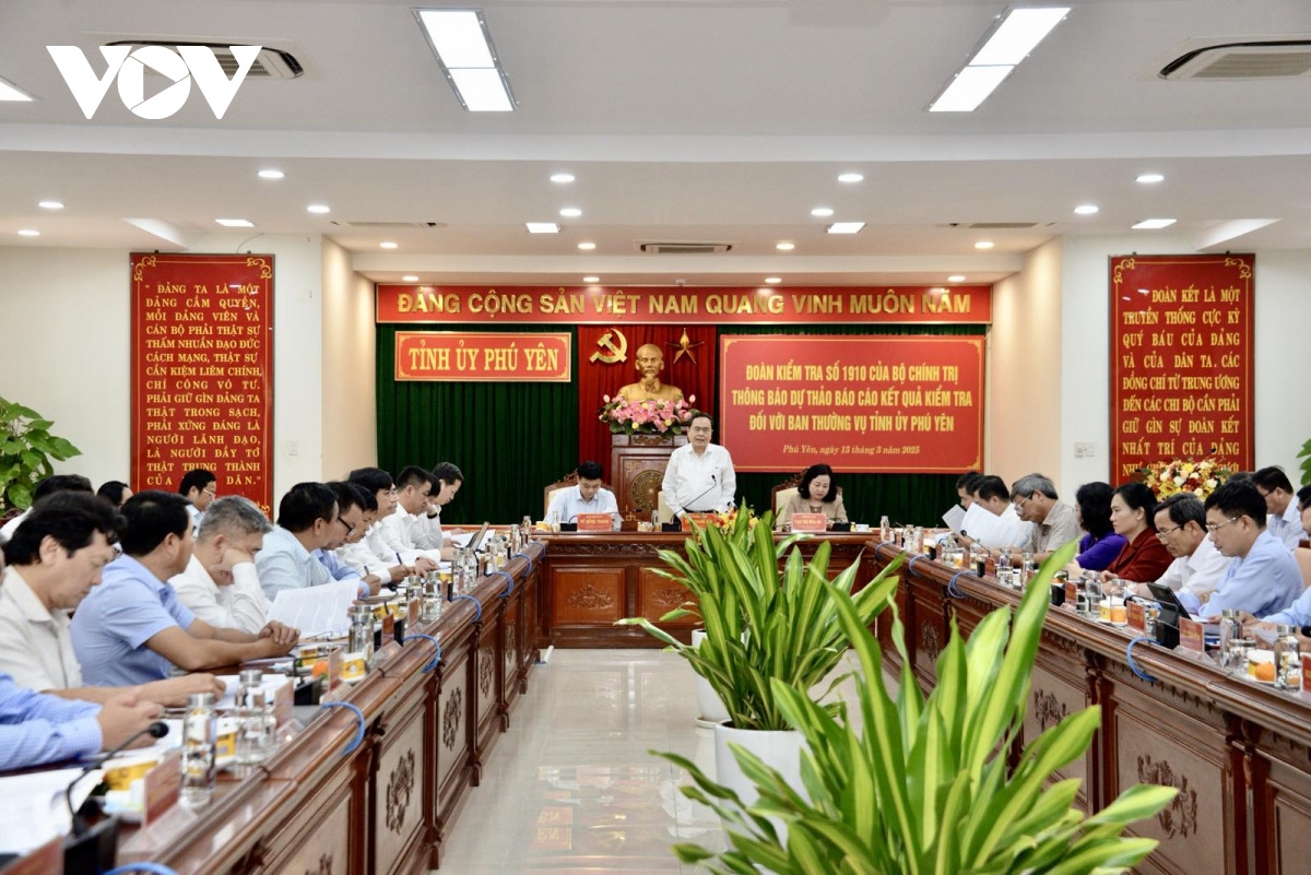 Tại buổi làm việc, Phó Chủ nhiệm Ủy ban Kiểm tra Trung ương, Phó Trưởng Đoàn kiểm tra Đoàn Anh Dũng đã trình bày tóm tắt dự thảo báo cáo kết quả kiểm tra của Đoàn kiểm tra số 1910 đối với Ban Thường vụ Tỉnh uỷ Phú Yên về 4 nội dung gồm: Việc tinh gọn bộ máy; Công tác chuẩn bị Đại hội Đảng bộ các cấp tiến tới Đại hội đại biểu toàn quốc lần thứ 14 của Đảng; Đột phá phát triển khoa học, công nghệ, đổi mới sáng tạo và chuyển đổi số quốc gia và Đề án bổ sung về phát triển kinh tế - xã hội năm 2025 với mục tiêu tăng trưởng đạt 8% trở lên.