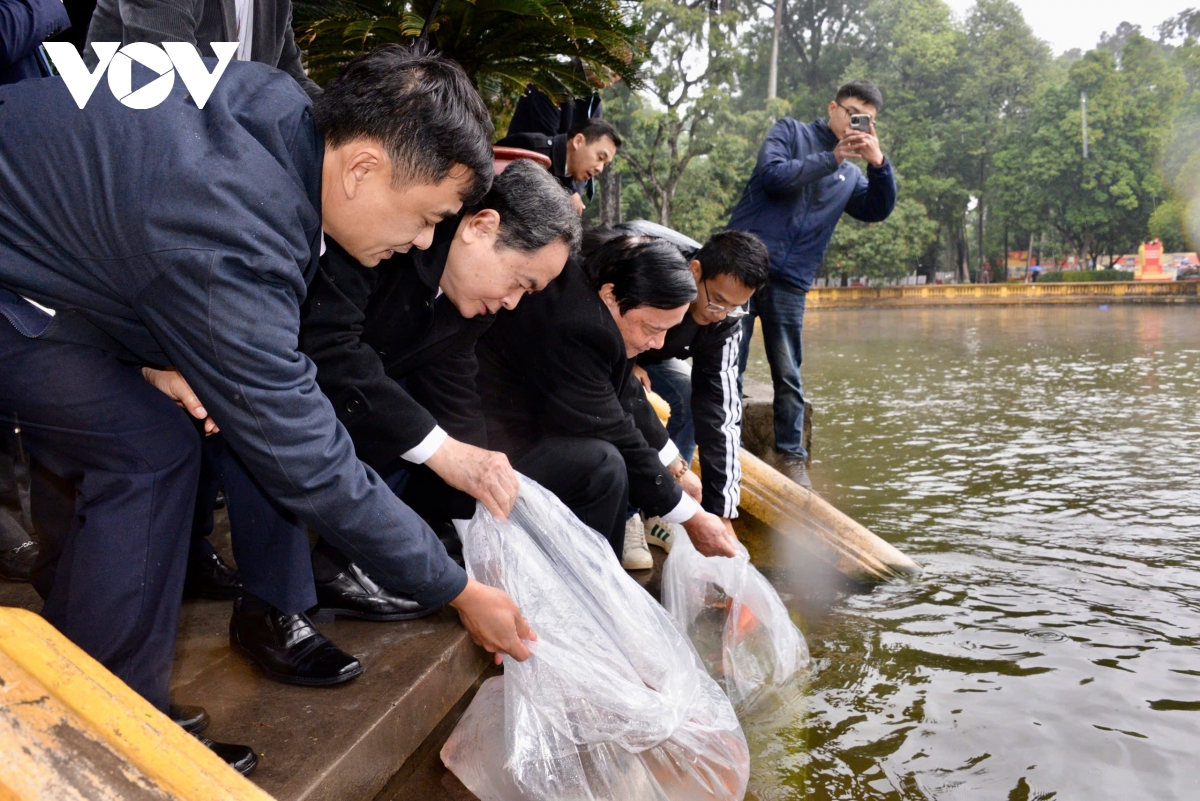 Chủ tịch Quốc hội thực hiện nghi thức thả cá tại ao cá Bác Hồ.
