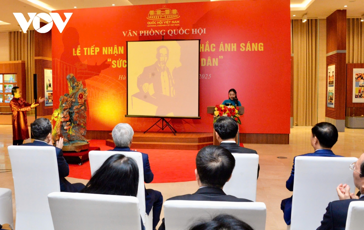 Phát biểu tại lễ tiếp nhận, Phó Chủ nhiệm Văn phòng Quốc hội Nguyễn Văn Hiển cho biết, tác phẩm điêu khắc ánh sáng "Sức mạnh của lòng dân" tái hiện khoảnh khắc Chủ tịch Hồ Chí Minh bỏ lá phiếu đầu tiên trong tổng tuyển cử đầu tiên bầu Quốc hội Việt Nam ngày 6/1/1946, sự kiện mở đầu của nền dân chủ của nước Việt Nam độc lập.