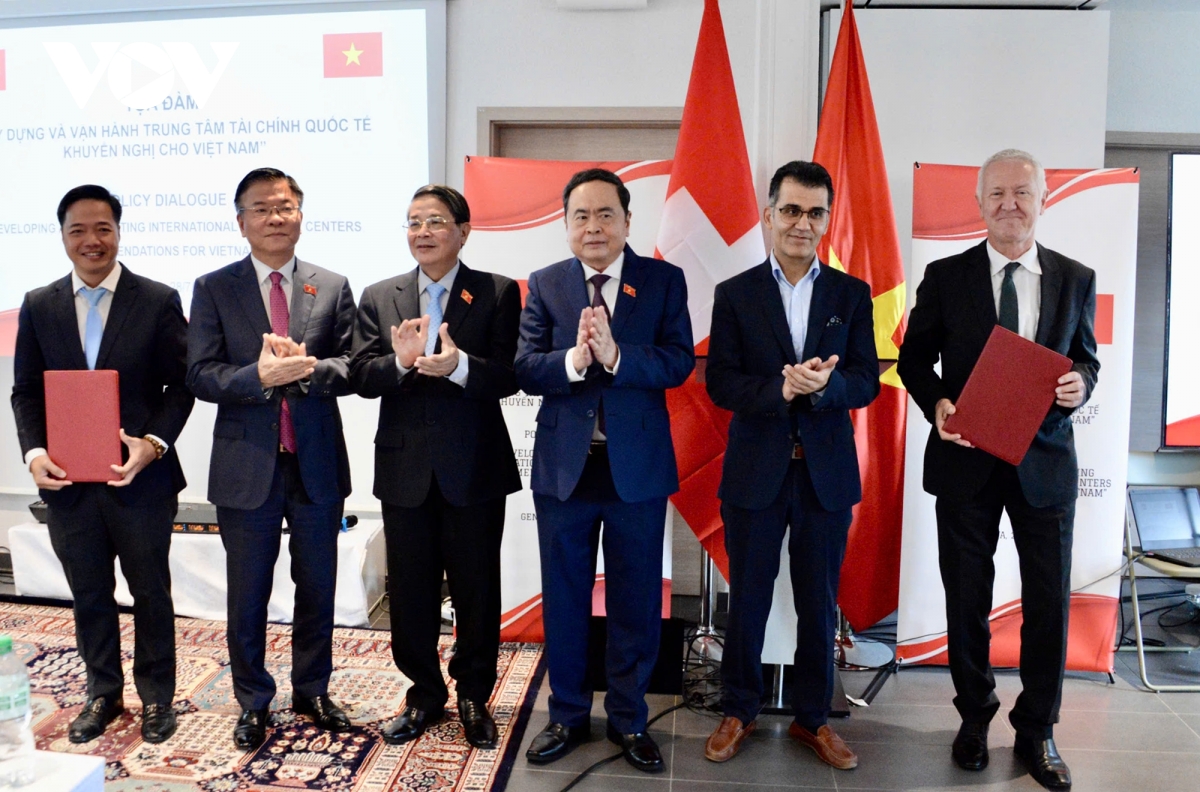 VOV.VN - Ngày 28/7, tại Geneva, Thụy Sĩ, Chủ tịch Quốc hội Trần Thanh Mẫn đã dự Tọa đàm “Xây dựng và vận hành Trung tâm tài chính quốc tế - khuyến nghị cho Việt Nam”.