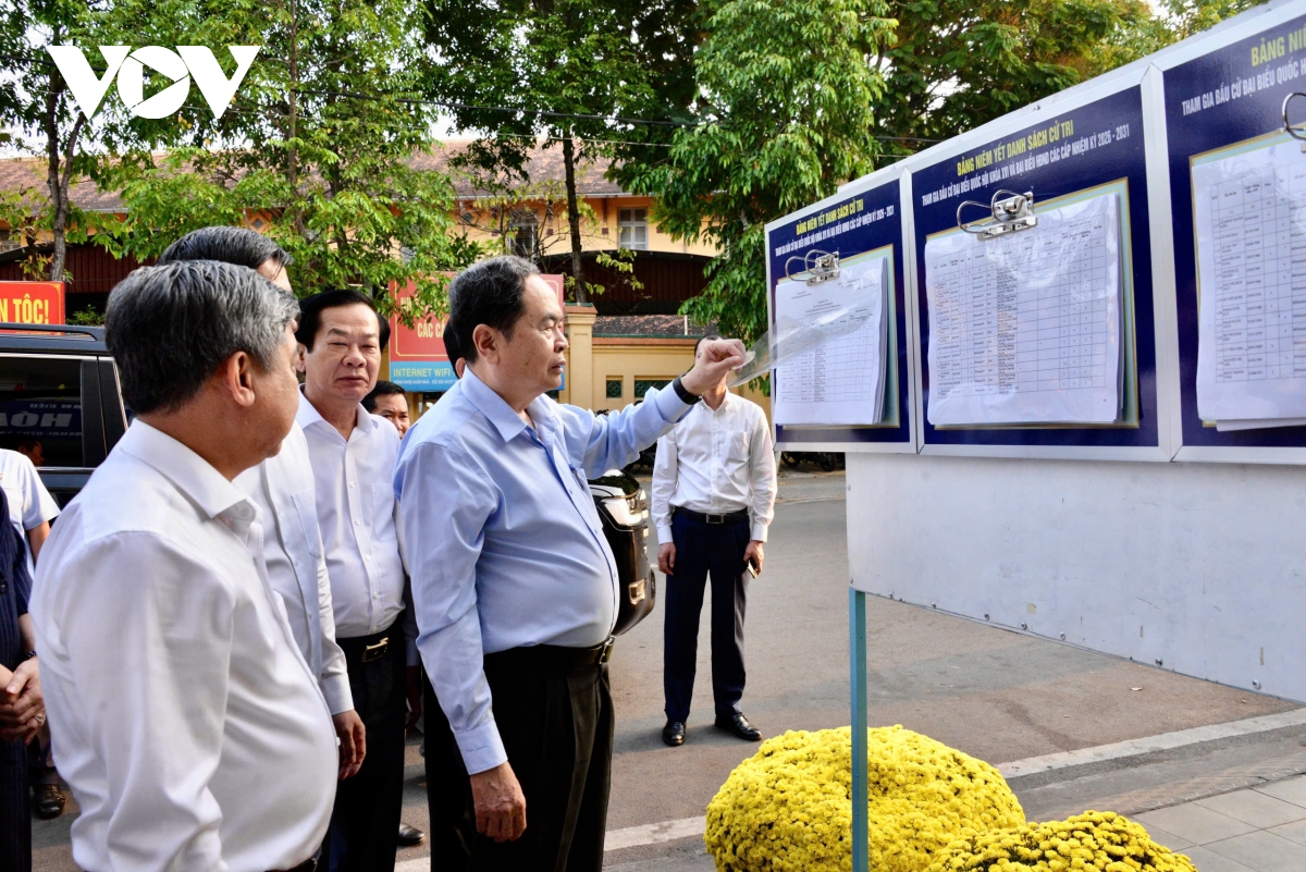 Chủ tịch Quốc hội, Chủ tịch Hội đồng Bầu cử quốc gia Trần Thanh Mẫn và Đoàn công tác khảo sát thực tế khu vực bỏ phiếu số 26 tại phường Ninh Kiều, thành phố Cần Thơ