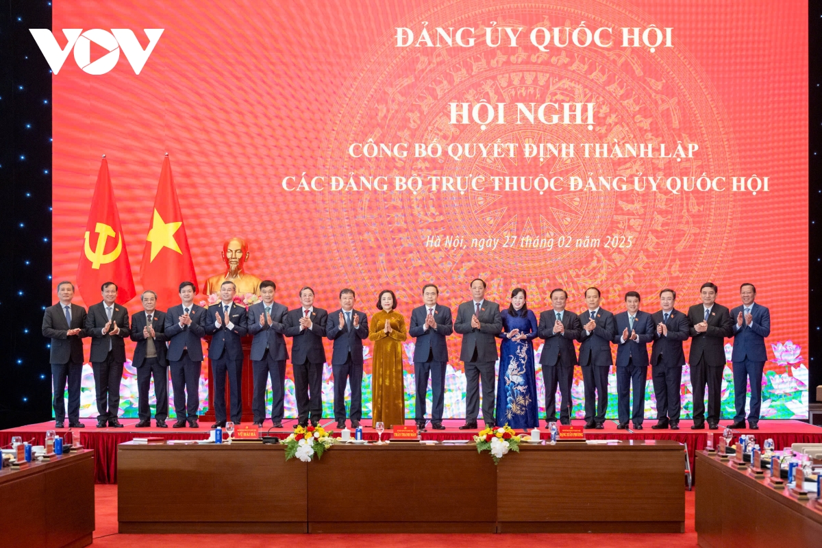 Theo đó, thành lập 11 đảng bộ trực thuộc Đảng ủy Quốc hội, gồm: Đảng bộ Kiểm toán nhà nước; Đảng bộ Văn phòng Quốc hội; Đảng bộ Hội đồng Dân tộc; Đảng bộ Ủy ban Pháp luật và Tư pháp; Đảng bộ Ủy ban Kinh tế và Tài chính; Đảng bộ Ủy ban Quốc phòng, An ninh và Đối ngoại; Đảng bộ Ủy ban Văn hóa và Xã hội; Đảng bộ Ủy ban Khoa học, Công nghệ và Môi trường; Đảng bộ Ủy ban Công tác đại biểu; Đảng bộ Ủy ban Dân nguyện và Giám sát; Đảng bộ các cơ quan tham mưu, giúp việc Đảng ủy Quốc hội
