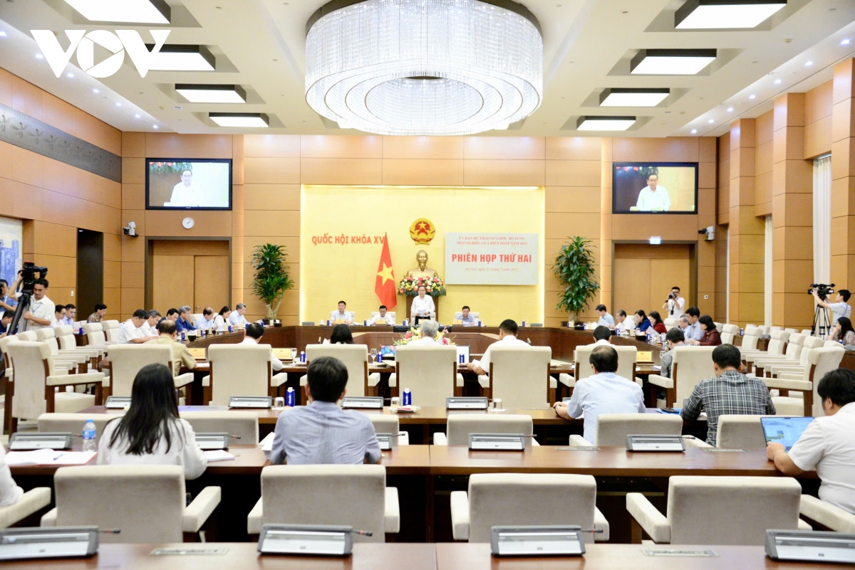 VOV.VN - Chiều nay (22/5), tại Nhà Quốc hội, Ủy ban Dự thảo sửa đổi, bổ sung một số điều của Hiến pháp năm 2013 họp phiên toàn thể lần thứ hai. Chủ tịch Quốc hội, Chủ tịch Ủy ban Trần Thanh Mẫn chủ trì phiên họp.