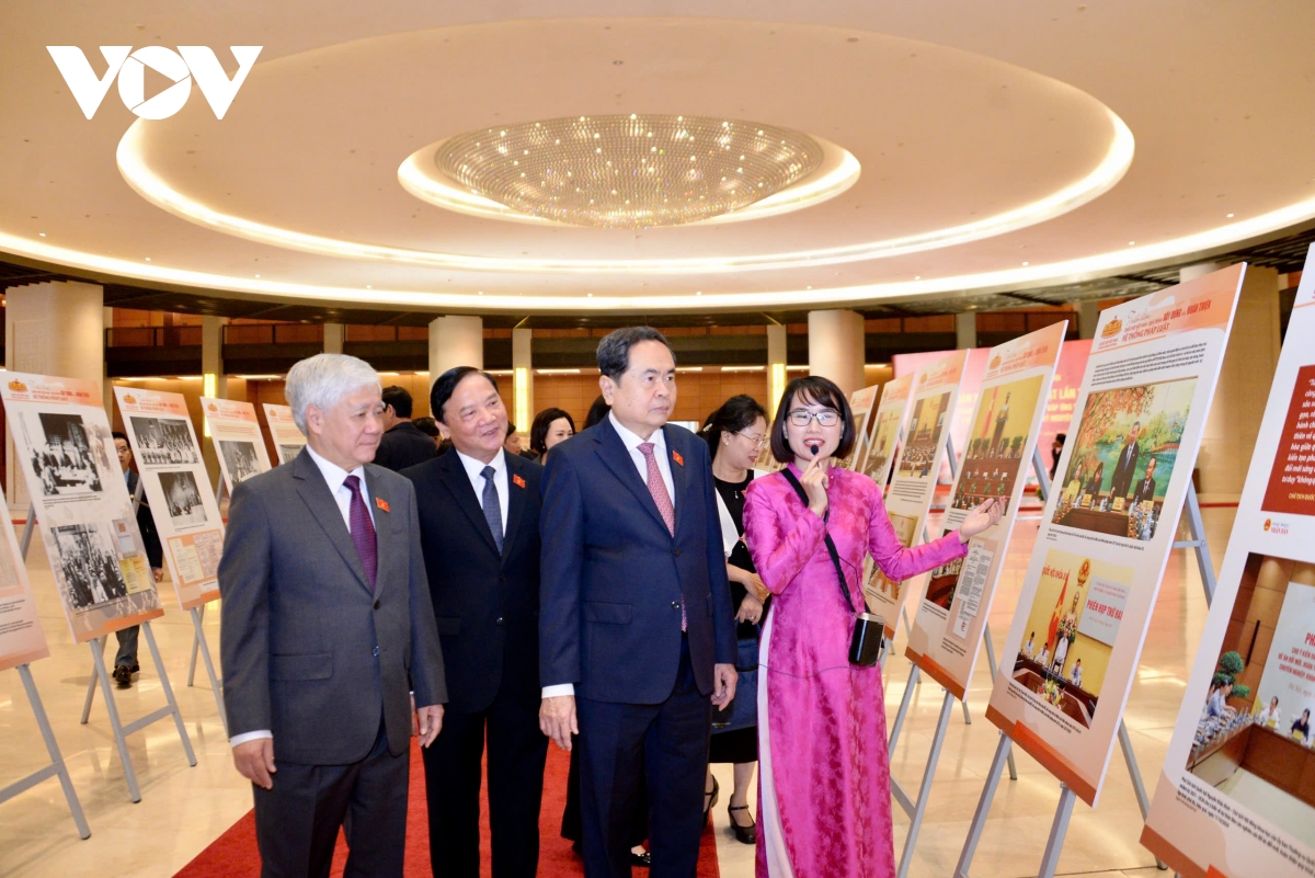 Chủ tịch Quốc hội Trần Thanh Mẫn và các đại biểu tham quan Triển lãm "Quốc hội Việt Nam - quá trình xây dựng và hoàn thiện hệ thống pháp luật"
