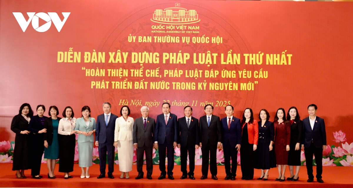 VOV.VN - Ngày 22/11, tại Nhà Quốc hội, Chủ tịch Quốc hội Trần Thanh Mẫn chủ trì Diễn đàn Xây dựng pháp luật lần thứ I với chủ đề “Hoàn thiện thể chế, pháp luật đáp ứng yêu cầu phát triển đất nước trong kỷ nguyên mới”.