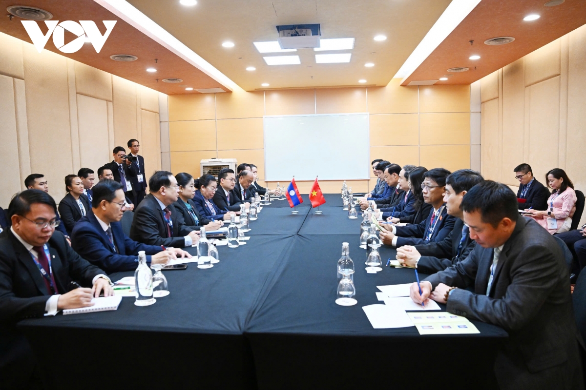 Hai nhà lãnh đạo bày tỏ vui mừng nhận thấy quan hệ hợp tác giữa hai nước, hai Quốc hội ngày càng được củng cố, duy trì chặt chẽ, hiệu quả, thiết thực; phối hợp chặt chẽ trong triển khai thực hiện tốt nội dung của Thỏa thuận hợp tác giữa hai Quốc hội. Hai bên đánh giá cao Ban Biên soạn cuốn sách “50 quan hệ giữa Quốc hội nước CHXHCN Việt Nam và Quốc hội nước CHDCND Lào - Hợp tác toàn diện phát triển” của Quốc hội hai nước đã nỗ lực, tích cực phối hợp cơ bản đã hoàn thiện việc biên soạn, xuất bản vào năm 2025 nhân dịp kỷ niệm 50 năm quan hệ Quốc hội hai nước.