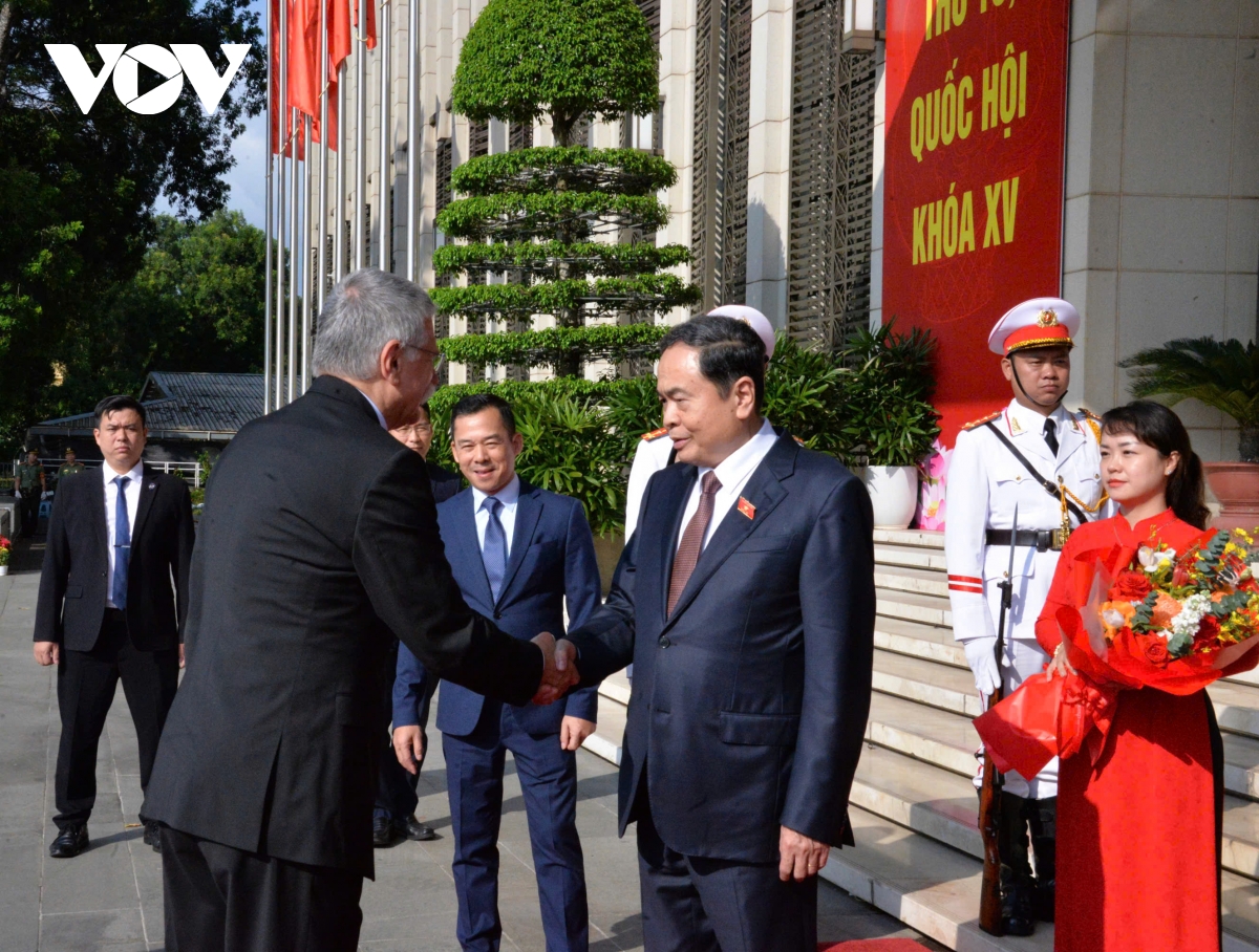 Trao đổi về tình hình hợp tác giữa Quốc hội hai nước, Chủ tịch Quốc hội Trần Thanh Mẫn đã chia sẻ một số nét lớn về kỳ họp lần thứ 10 Quốc hội Khóa XV vừa được khai mạc sáng nay; nhấn mạnh tầm quan trọng của hợp tác giữa hai Quốc hội trong quan hệ hai nước. Hai bên nhất trí tăng cường trao đổi đoàn Lãnh đạo cấp cao Quốc hội, các Ủy ban chuyên môn và Nhóm Nghị sĩ hữu nghị nhằm trao đổi và chia sẻ thông tin, kinh nghiệm trong lĩnh vực hoạt động nghị viện; hợp tác trong việc giám sát, đôn đốc và hỗ trợ Chính phủ thực hiện hiệu quả các thỏa thuận, cam kết cấp cao; nhất trí về chủ đề chính của Hội thảo lập pháp lần thứ 6 giữa hai Quốc hội, dự kiến diễn ra vào nửa đầu năm 2026; đẩy mạnh phối hợp chặt chẽ, ủng hộ lẫn nhau tại các diễn đàn liên nghị viện khu vực và thế giới như IPU, ASEP để đóng góp cho hòa bình, hợp tác và phát triển ở khu vực và trên thế giới.