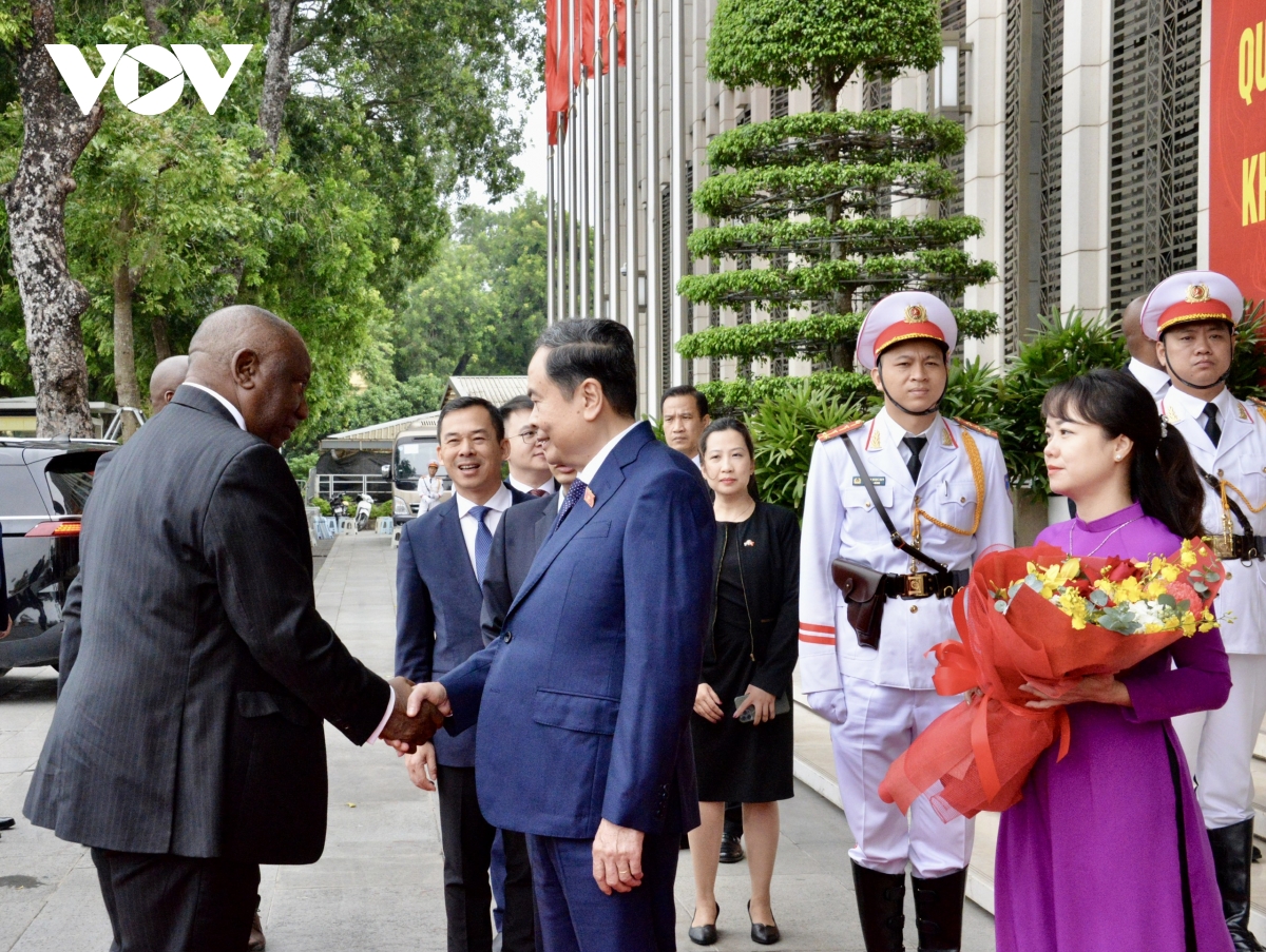 Tổng thống Nam Phi Matamela Cyril Ramaphosa cảm ơn sự đón tiếp trọng thị của Chủ tịch Quốc hội Trần Thanh Mẫn và các vị lãnh đạo Việt Nam dành cho đoàn đại biểu cấp cao Nam Phi, bày tỏ vinh dự được tới thăm Quốc hội Việt Nam trong chuyến thăm.