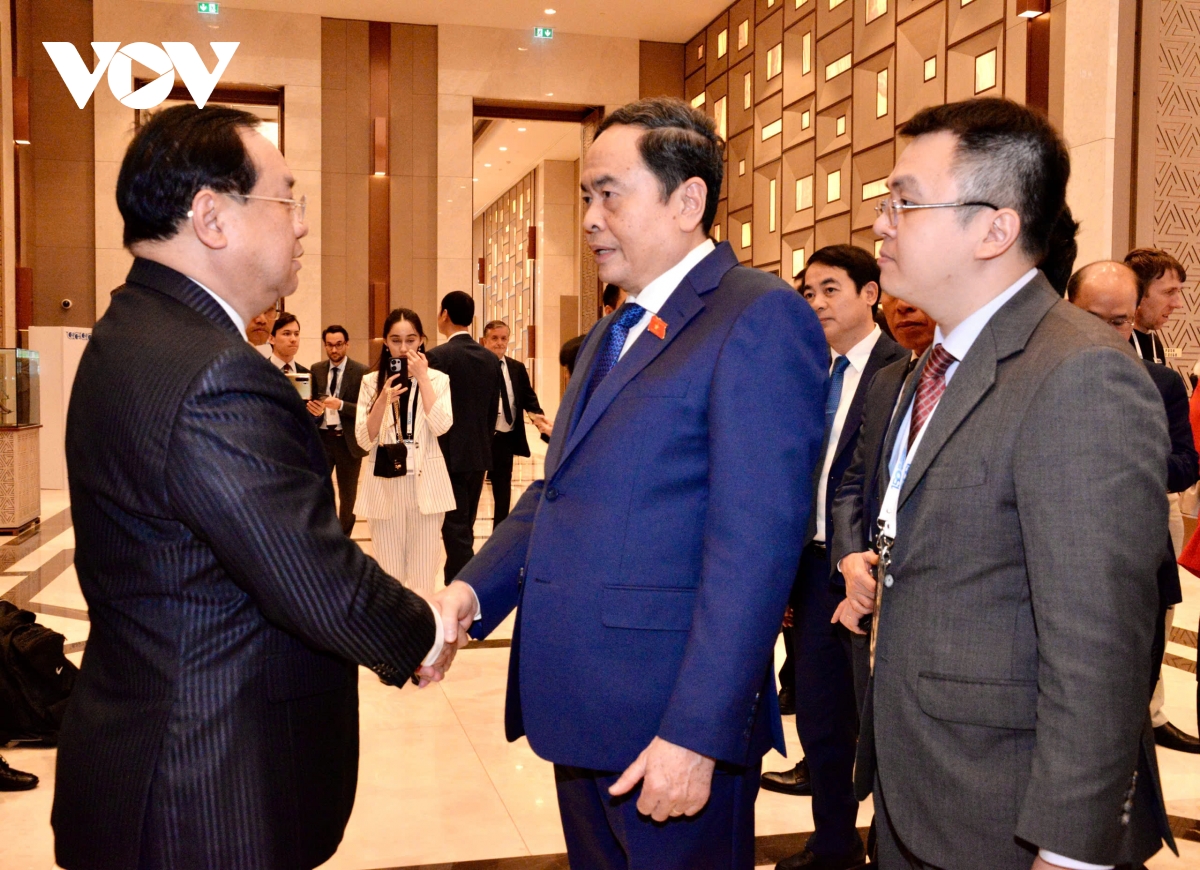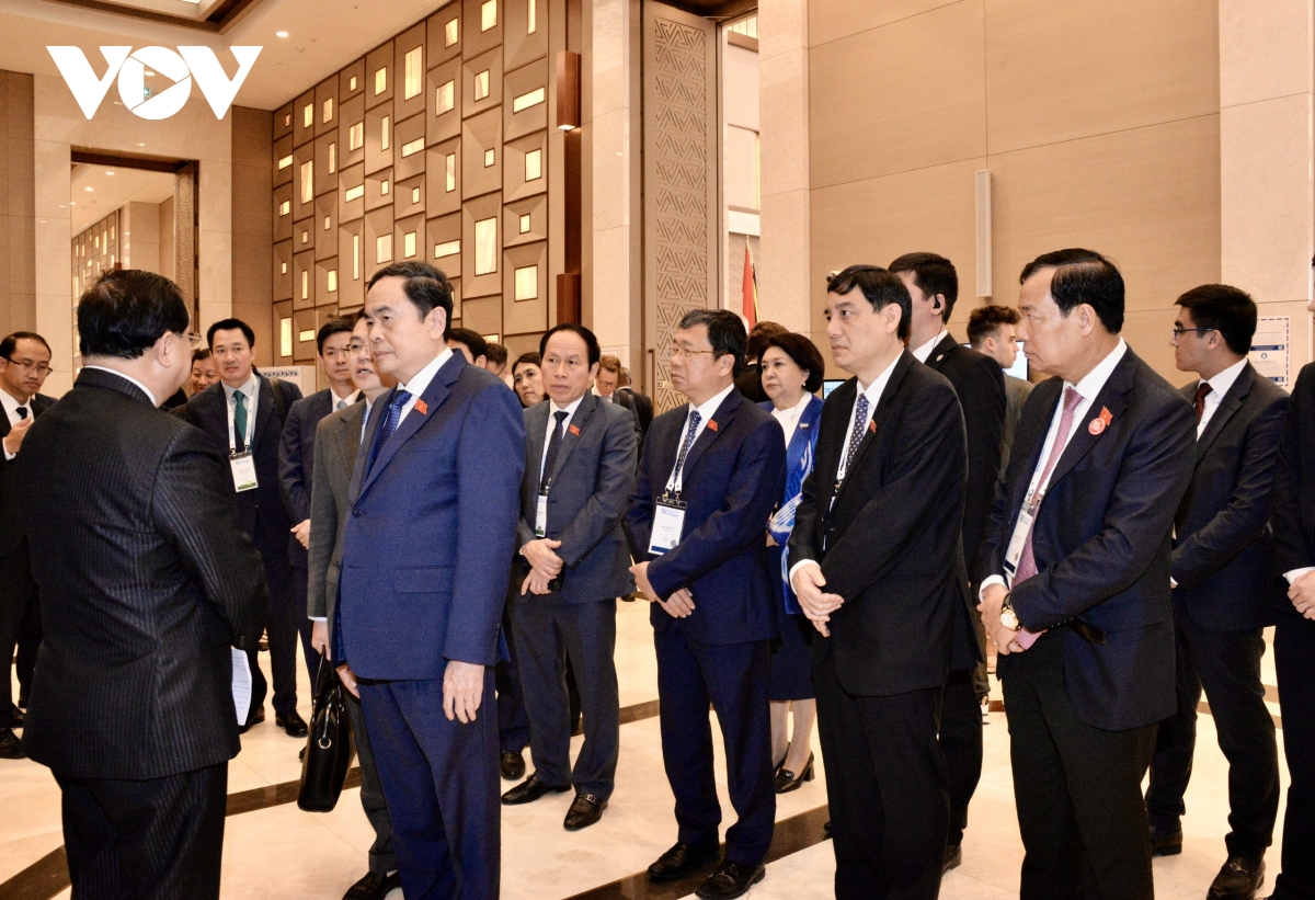VOV.VN - Ngày 6/4, trong khuôn khổ Đại hội đồng lần thứ 150 của Liên minh Nghị viện thế giới (IPU-150) tại Uzbekistan, Chủ tịch Quốc hội Trần Thanh Mẫn đã tiếp Chủ nhiệm Ủy ban Đối ngoại Quốc hội Lào Sanya Praseuth.